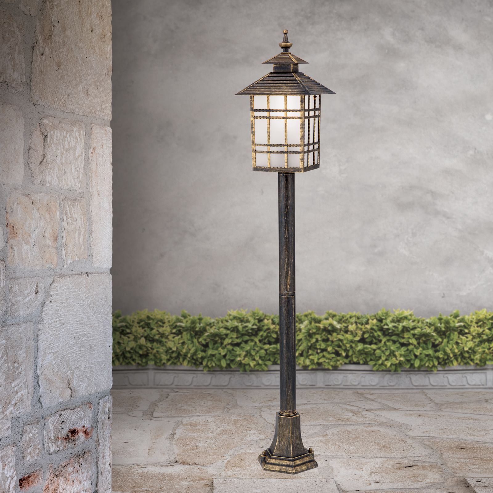 Die Wegleuchte der Außenleuchtenserie KIKO erinnert mit ihrem rasterartigen Design und satinierten Glaswänden an japanische Laternen.