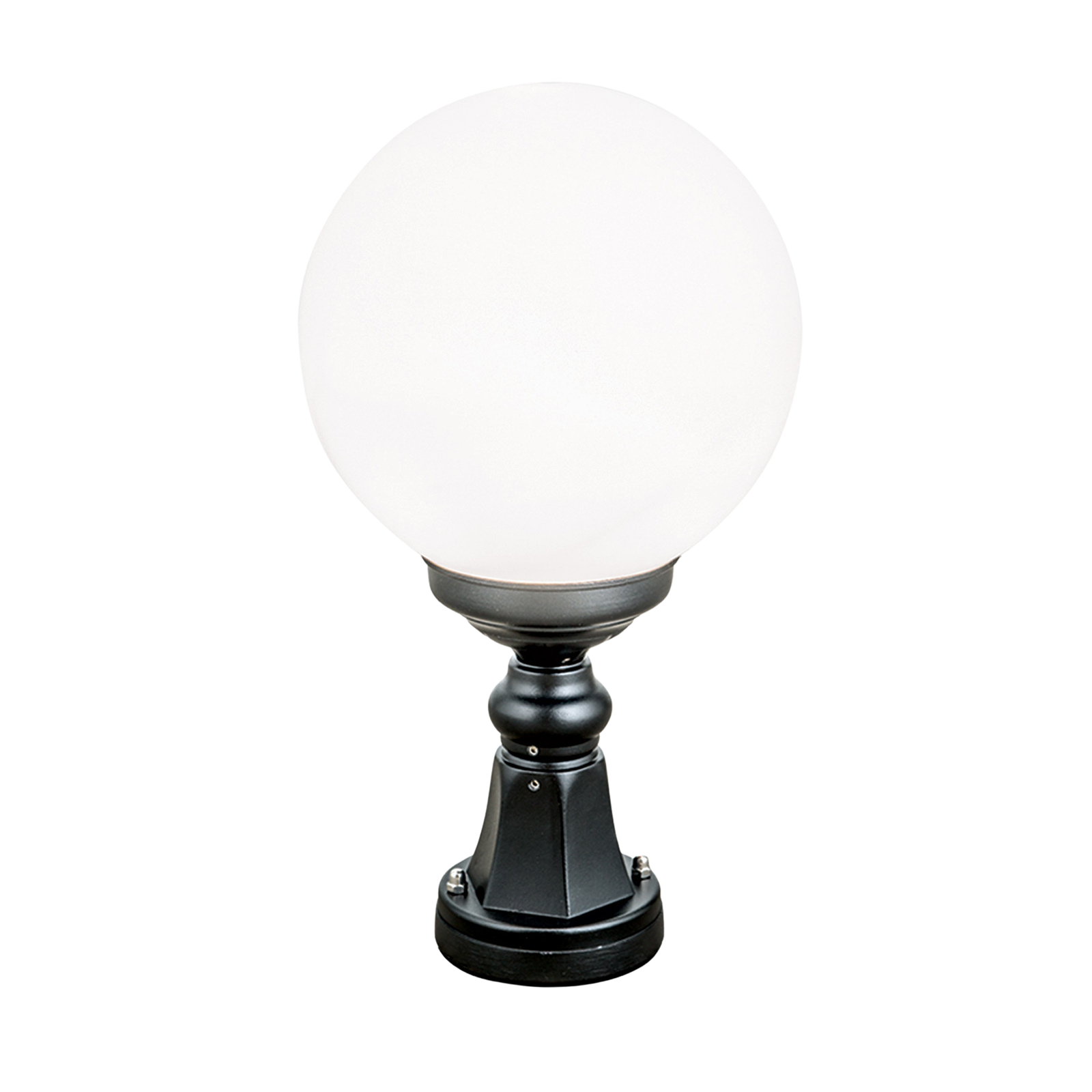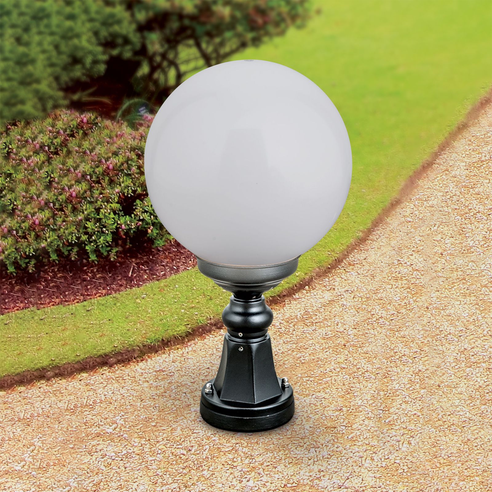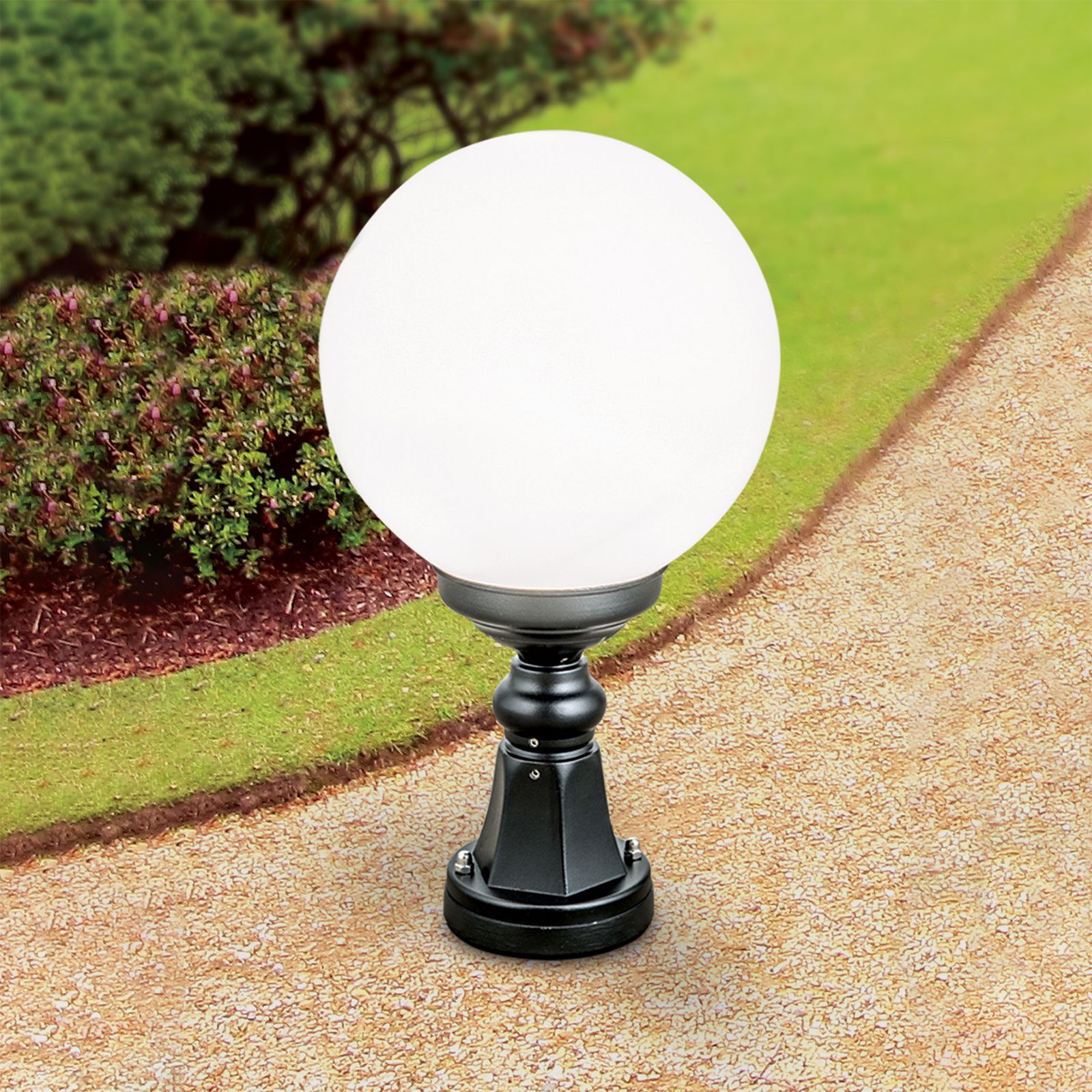 Die Sockelleuchte REIKA im klassischen Stil beleuchtet Ihren Vorgarten und zaubert auf stimmungsvolle Weise Licht auf die Gehwege. Auf einem Sockel befindet sich eine opal-glänzende Acrylglaskugel, die eine schöne Rundumbeleuchtung entstehen lässt, ohne den Betrachter zu blenden. Mit der Schutzklasse IP43 ist sie vor grobkörnigen Fremdkörper (>1mm) und Sprühwasser geschützt. Die Leuchte ist mit einem Phasenanschnittdimmer dimmbar, wodurch sich ganz leicht eine angenehme Atmosphäre erzeugen lässt, wird sie auf einer Terrasse angebracht. Ausgestattet ist sie mit einer E27-Fassung und kann mit maximal 75 Watt bestückt werden. Mit sparsamen LED-Lampen eignet sie sich für den Einsatz als energiesparendes Orientierungslicht.