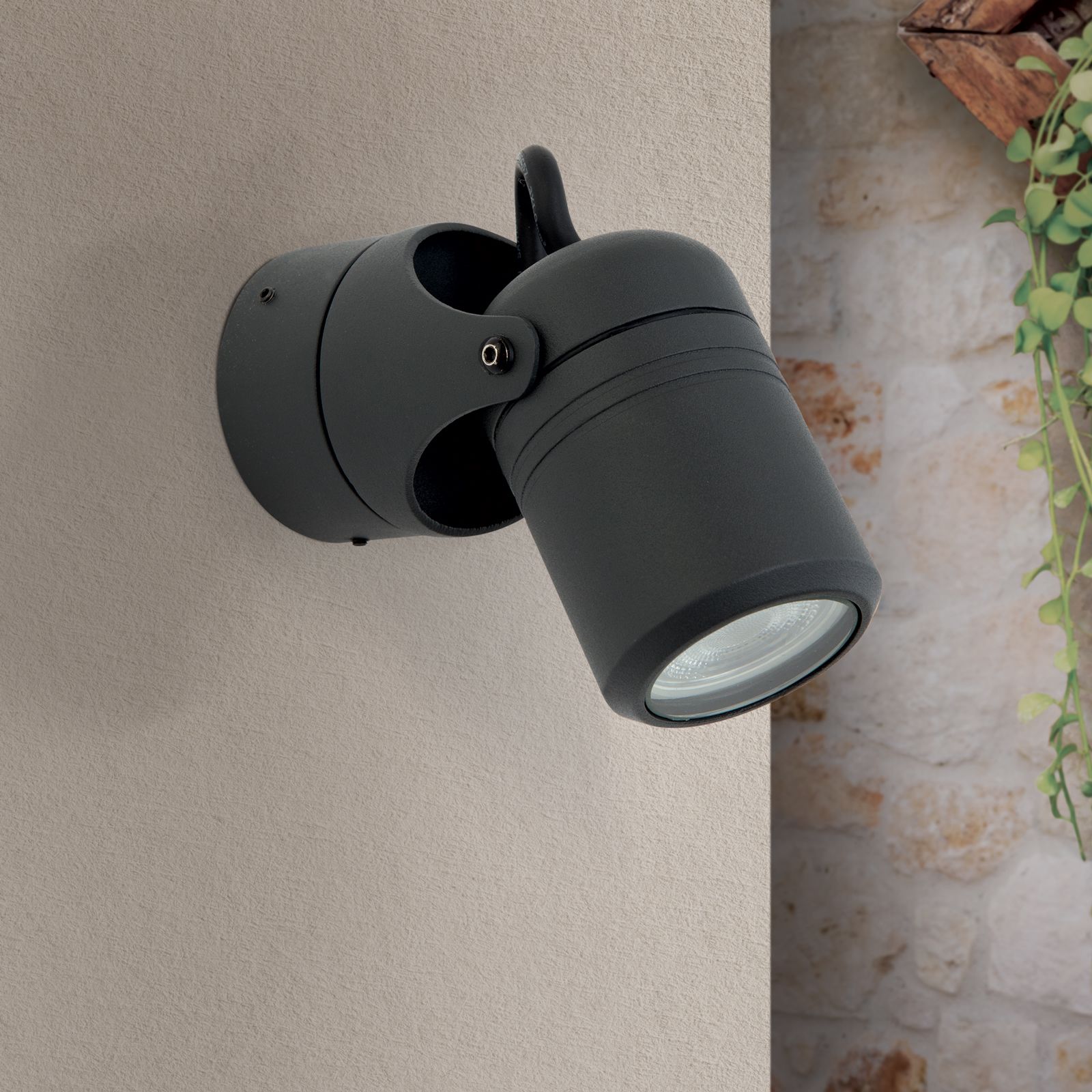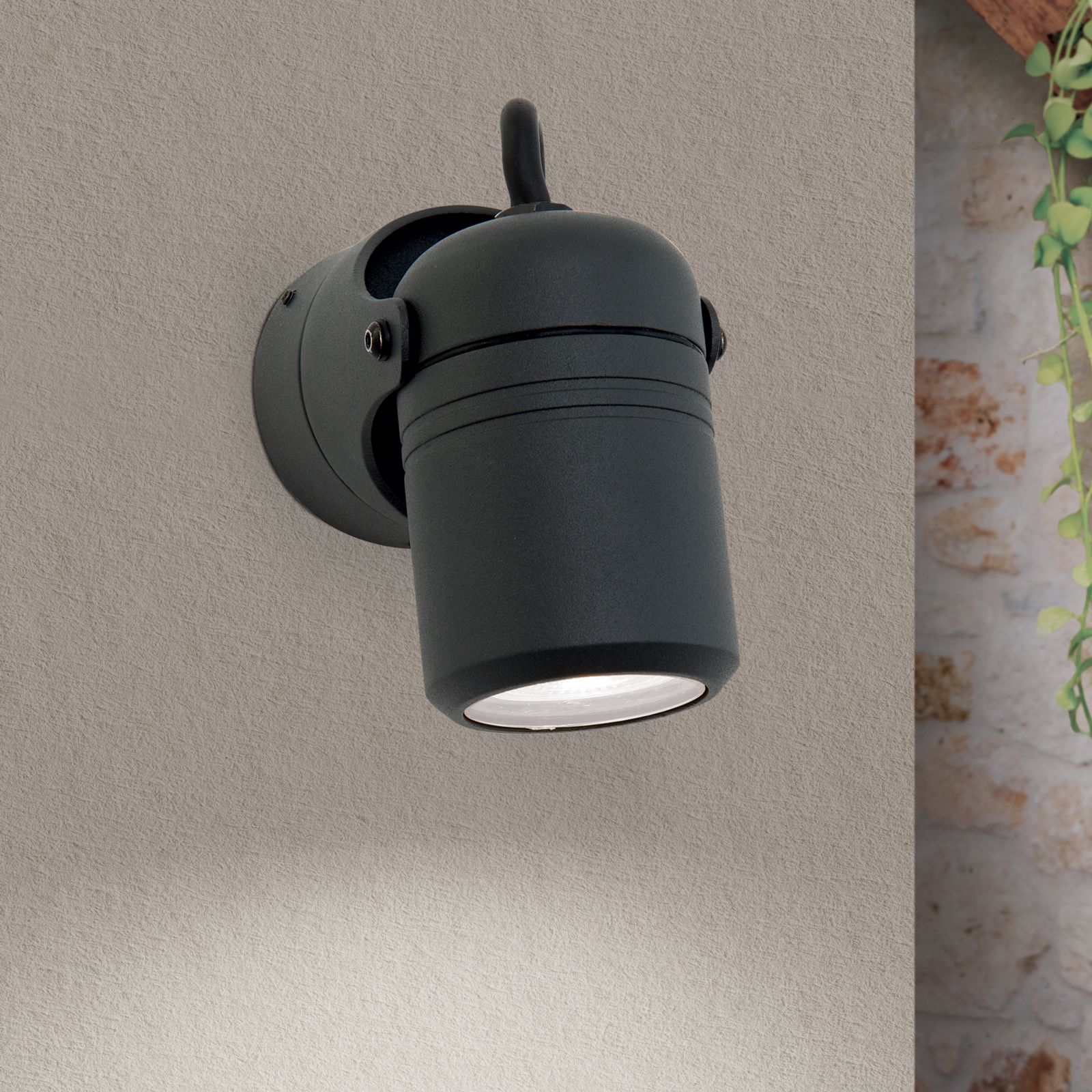 Dunkle Wege, die zur Haustüre führen zu beleuchten, gelingt mit dem Außenwandspot VISION. Mit seinem schlichten anthrazitfarbenen Erscheinungsbild lässt er sich auf Hausfassaden unterschiedlicher Untergründe und Stile anbringen. VISION ist nämlich schwenkbar und kann auf die gewünschte Zone ausgerichtet werden. Durch die Ausrichtung auf eine helle Hauswand spendet er indirektes Licht durch die Ausrichtung auf den Weg entlang der Hauswand direktes Licht. Ausgestattet ist dieser Spot mit einer GU10-Fassung, die mit Lampen mit maximal 13 Watt betrieben werden kann.