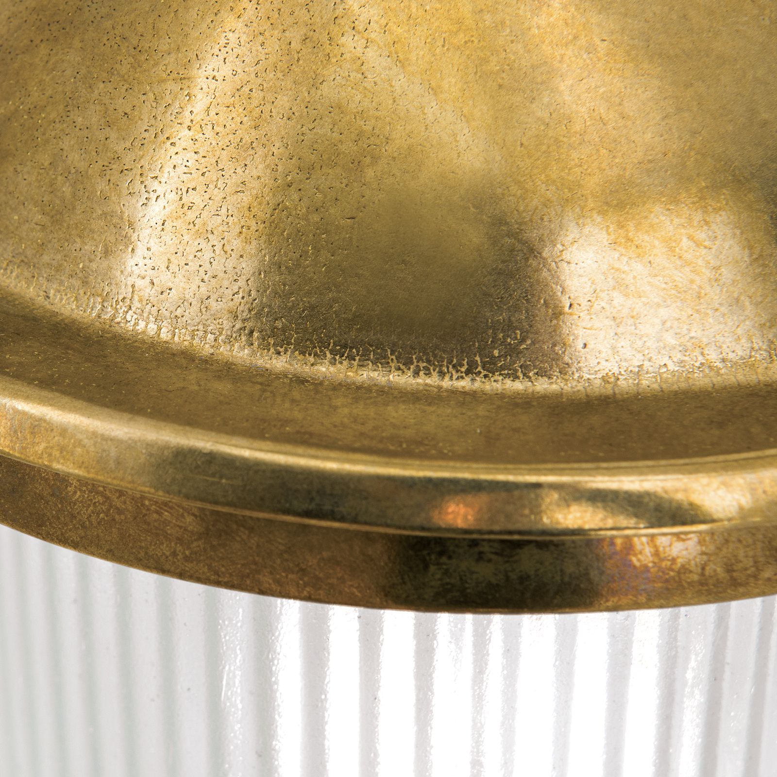 Die Außenwandleuchte YORK vereint zeitlose Eleganz mit robuster Funktionalität und setzt stilvolle Akzente an Hausfassaden, Eingangsbereichen oder Terrassen. Das hochwertige Gestell aus rohem Messing entwickelt mit der Zeit eine Patina und verleiht der Leuchte einen edlen, rustikalen Look. Der Glasschirm mit mattem Rillenmuster sorgt für eine angenehm diffuse Lichtverteilung.