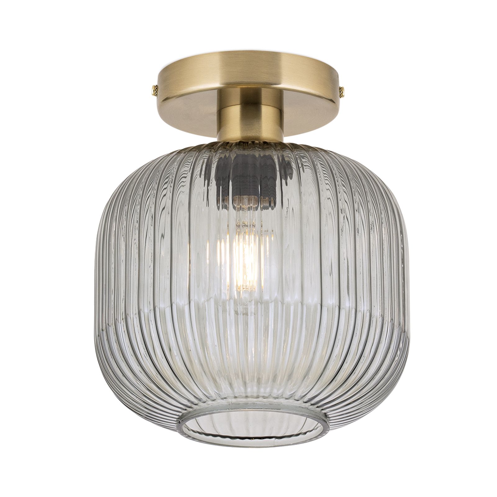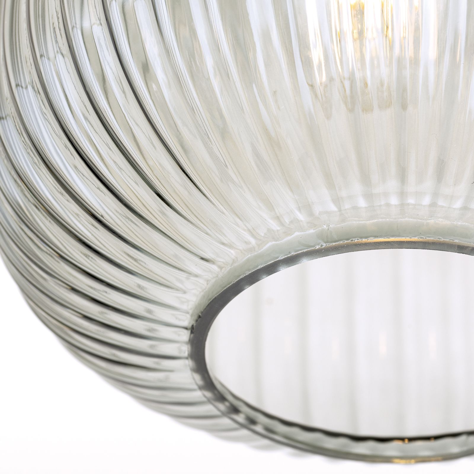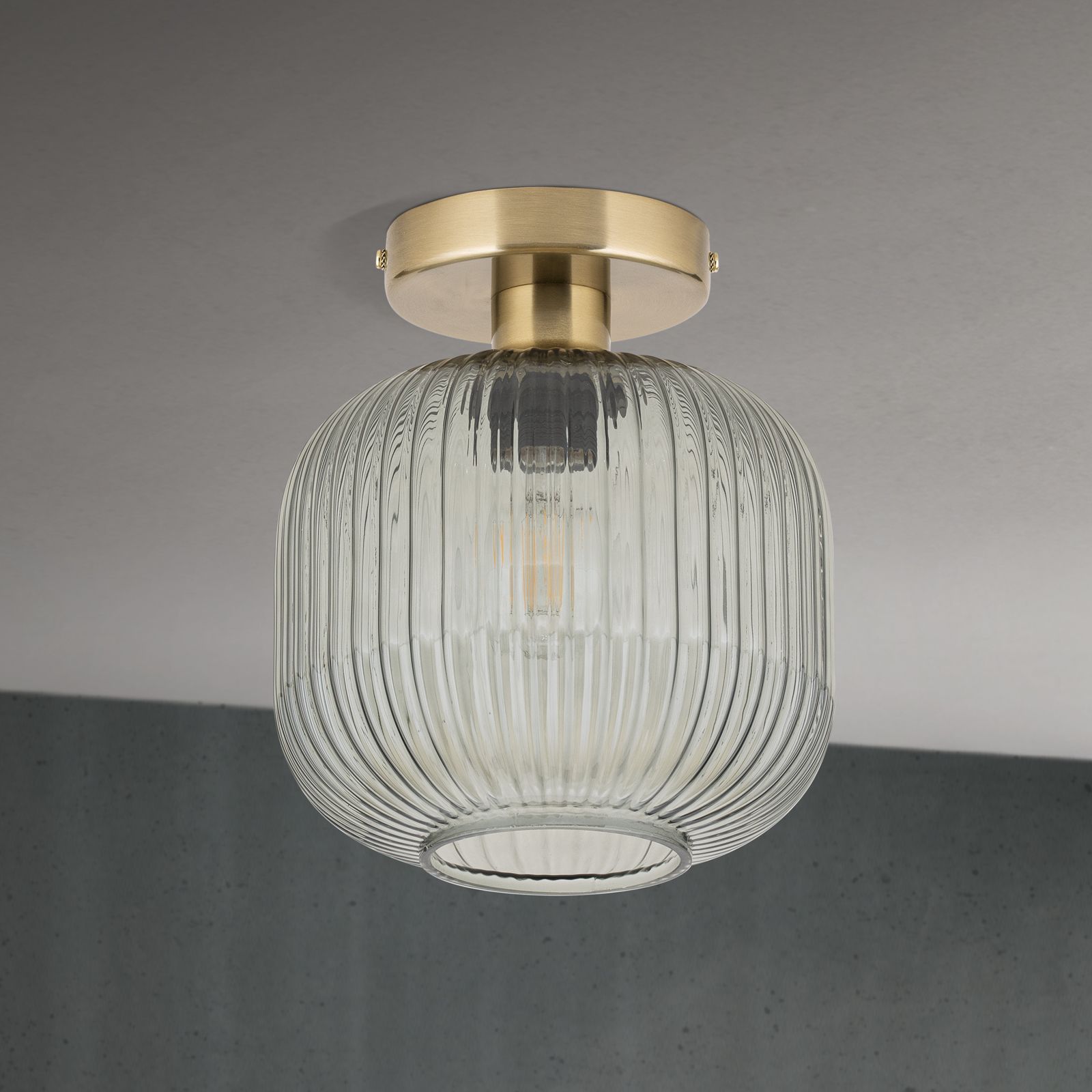 Bringen Sie nostalgischen Flair und stilvolle Lichtakzente in Ihr Zuhause – mit der Deckenleuchte CARNEVAL. Der edle Glasschirm in den Farbvarianten Grün, Rauch, Amber oder Rot sorgt für eine atmosphärische Lichtwirkung und macht diese Leuchte zu einem echten Blickfang. Das Rillendekor des Schirms verleiht dem Design Tiefe und einen Hauch von Retro-Charakter.