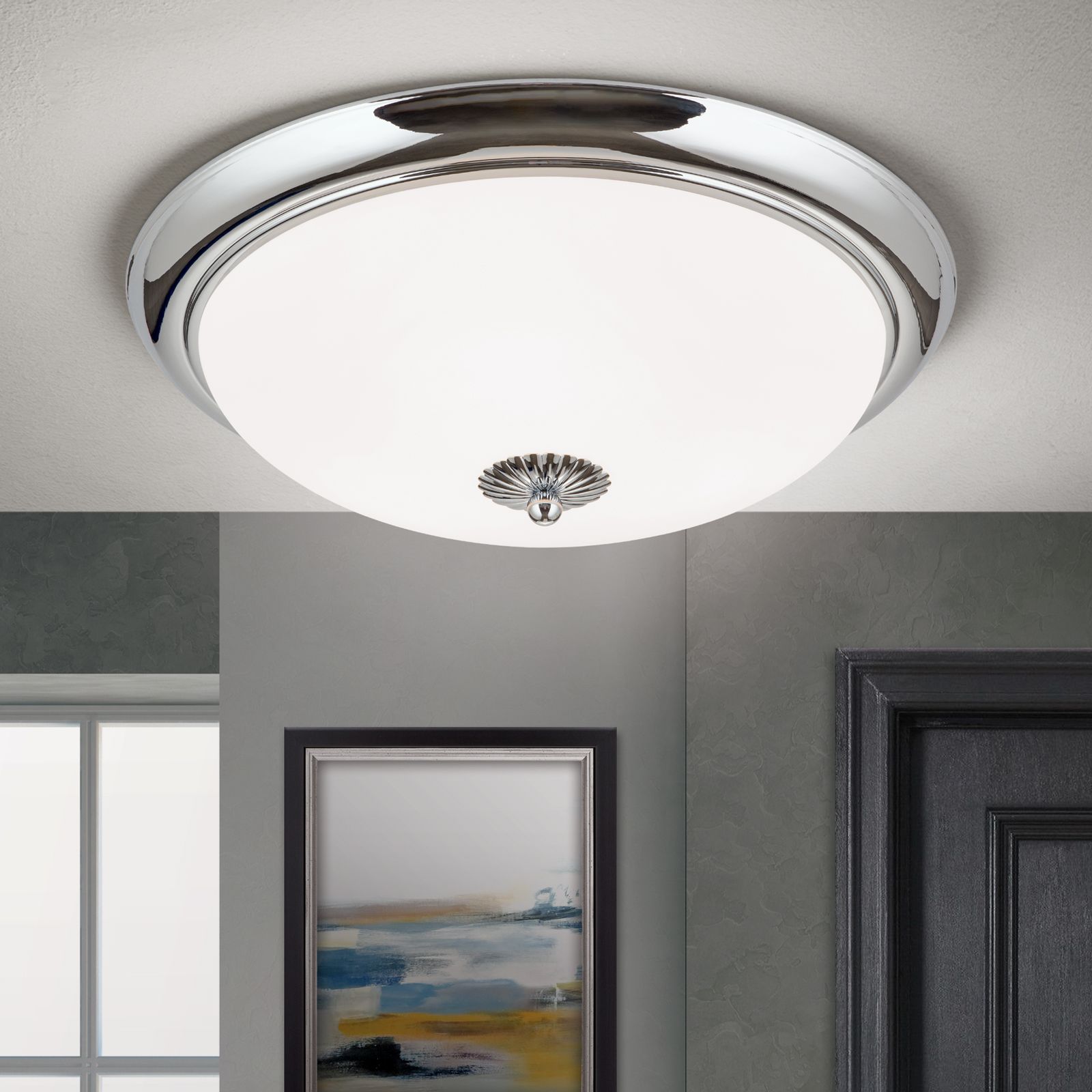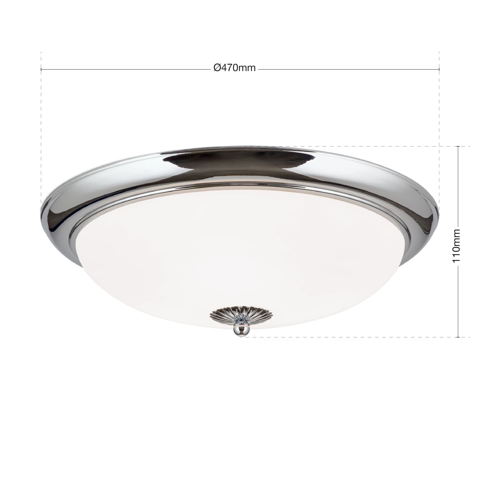 Deckenleuchte EMPIRE, Chrom, mit opal mattem Glas, mit Knopf, 47cm