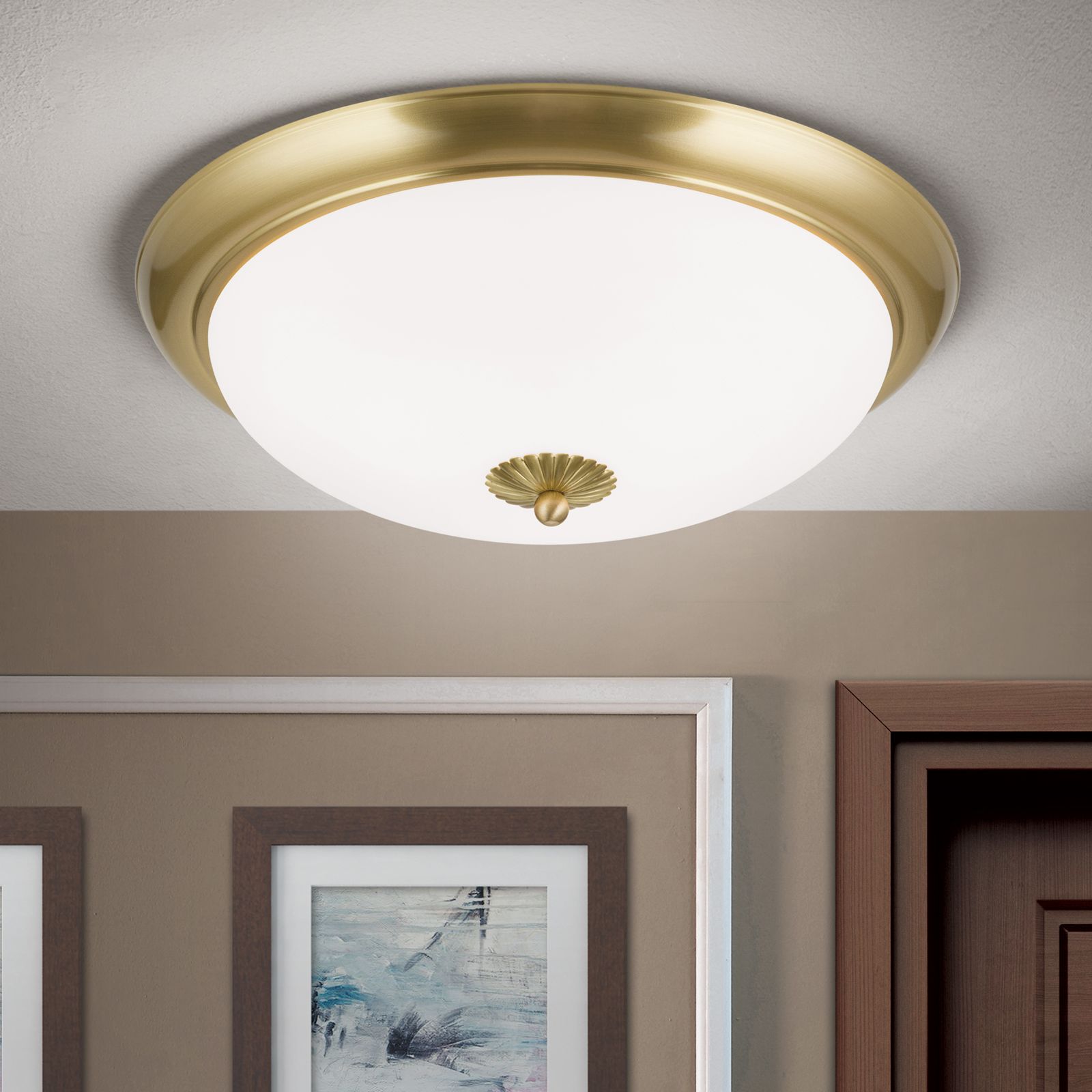 Deckenleuchte WIENER NOSTALGIE, Messing- matt, mit opal mattem Glas, mit Knopf, 47cm