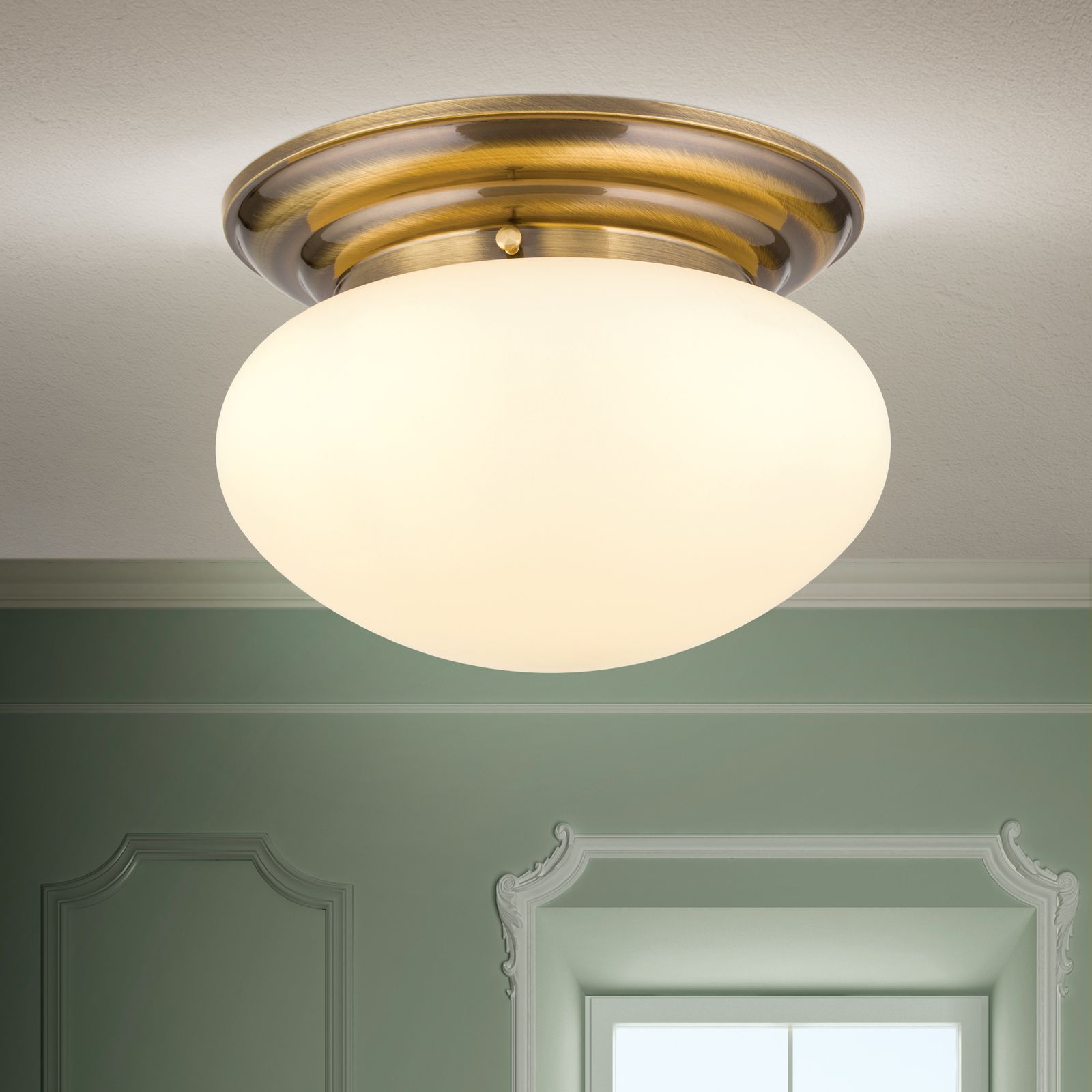 Die Deckenleuchte aus der WIENER NOSTALGIE-Klassikerserie ist Wegbegleiter von Generationen. Die zeitlose Gestaltung und die Hochwertigkeit der Materialien machen aus ihr ein willkommenes zentrales Einrichtungselement. Mit 33 Zentimetern Durchmesser ist eine ideale Größe gefunden worden für eine Schlafzimmerdeckenbeleuchtung, ein größeres Vorzimmer oder für die glücklichen Besitzer eines großzügigen Schrankraums. Das hochglanzpolierte Messing und der opalmatte Glasschirm spenden ein warmes, gleichmäßiges Licht. Die Deckenleuchte ist mit einer E27-Fassung für maximal 60 Watt versehen. Setzt man eine energieeffiziente LED-Lampe ein, schont man Umwelt und eigene Finanzen.