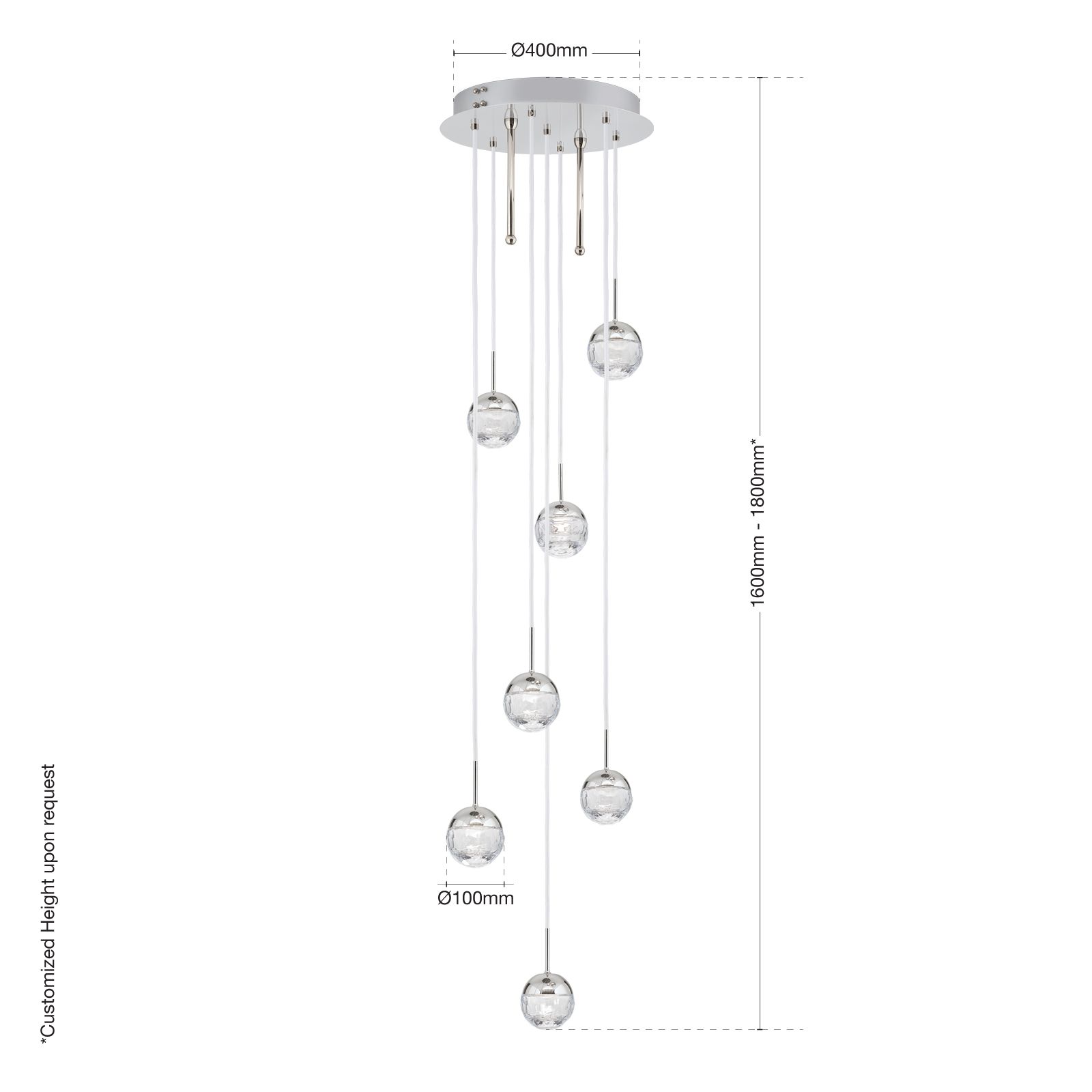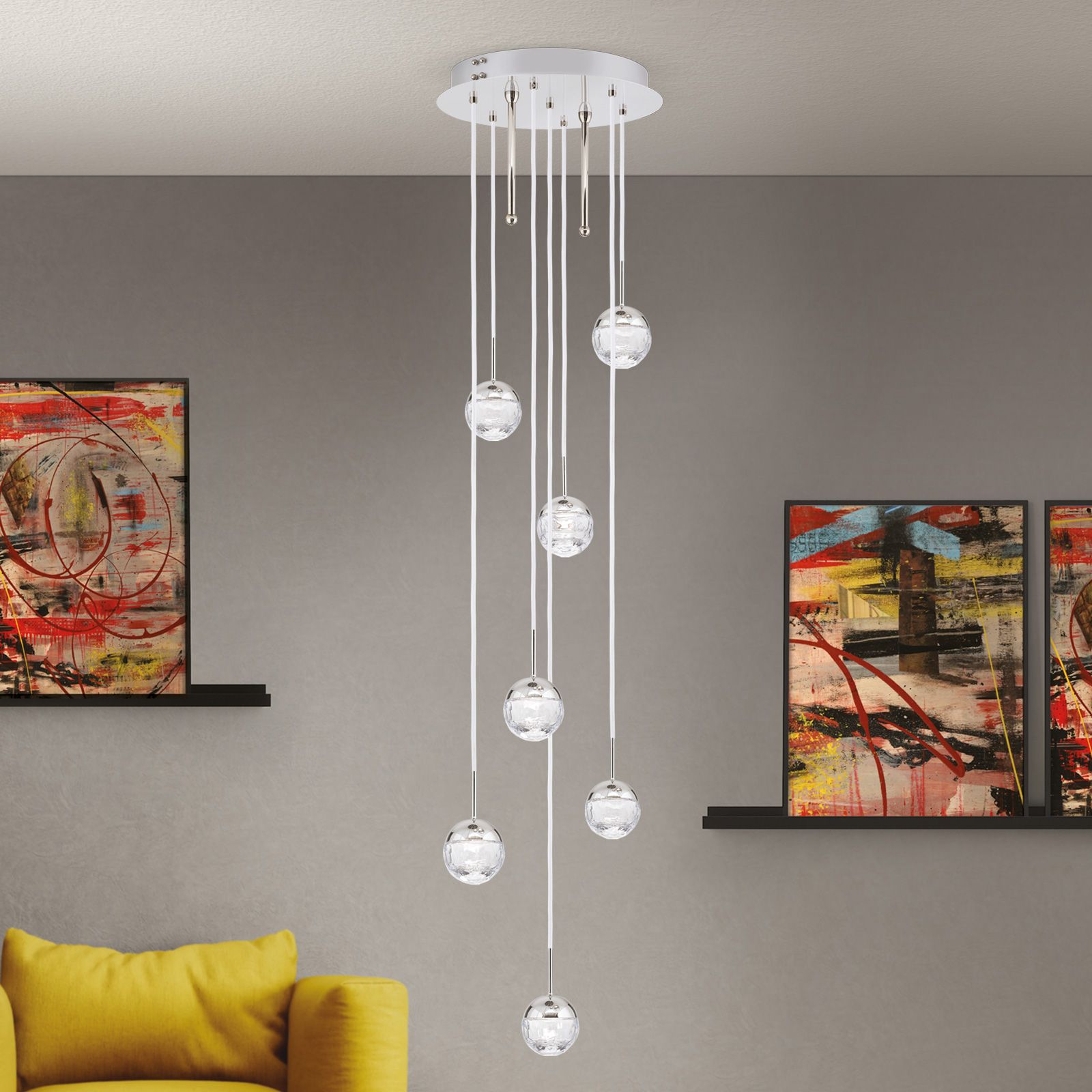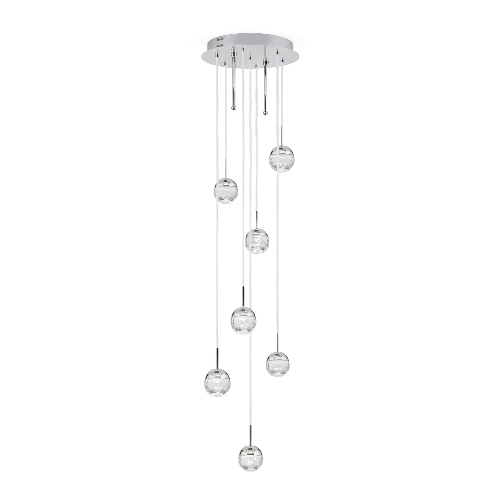 Eine verspielte Eleganz umgibt den Deckenluster BALL mit seinen sechs Vollschliff Kristallglaskugeln, die in purer Leichtigkeit durch die Lüfte tanzen. Dabei kann jede Leuchtkugel bei der Montage auf die gewünschte Höhe gesetzt werden und der Leuchte eine individuelle Gestaltung verliehen werden.