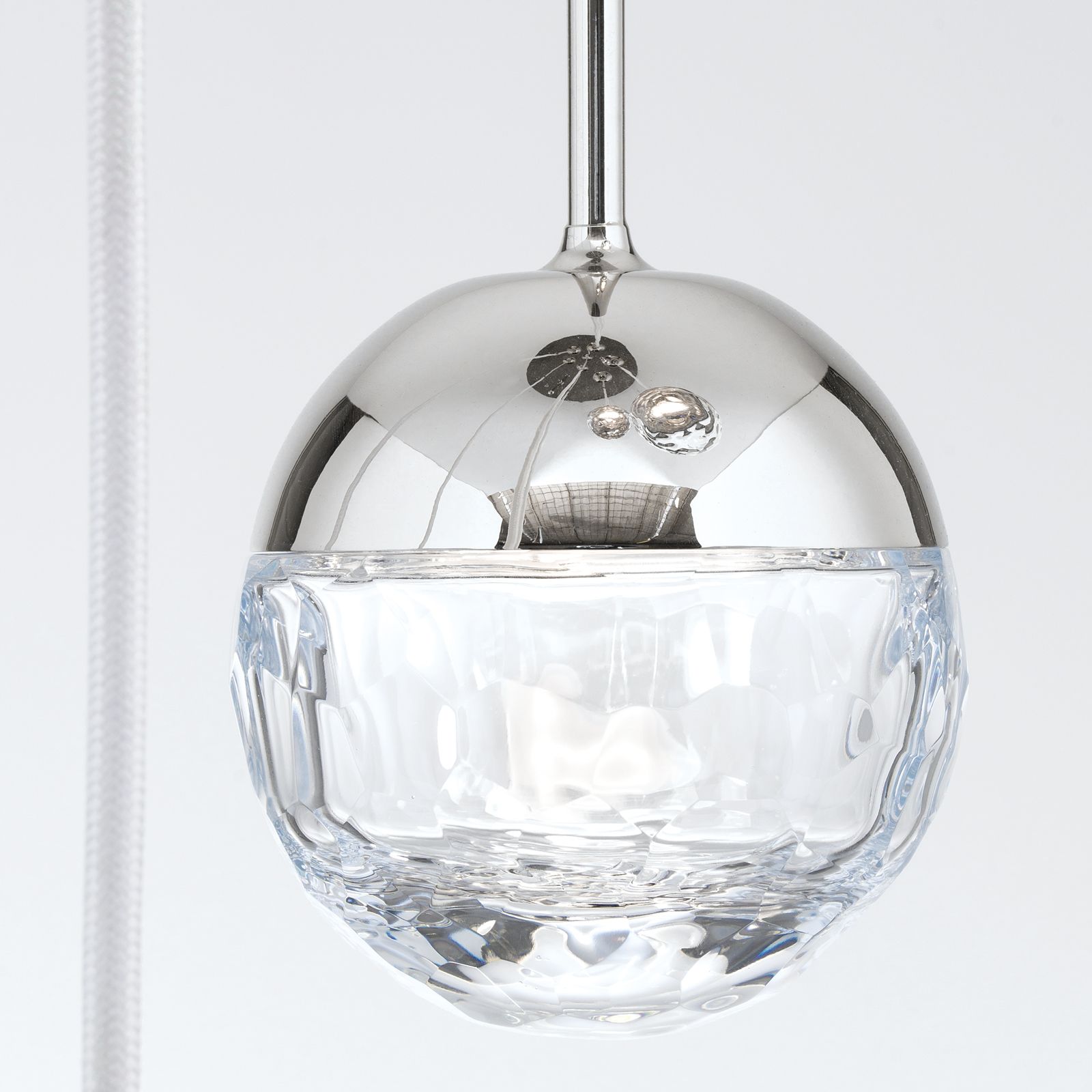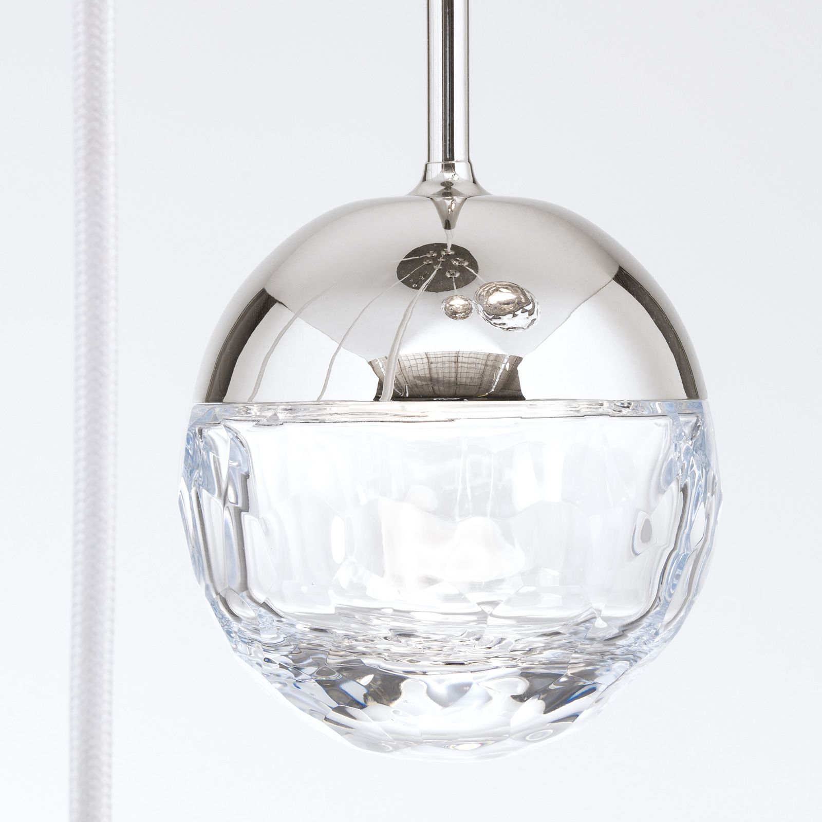 Deckenluster BALL, Ø 40cm, nickel, mit weißem Textilkabel und klaren Gläsern in Kristallschliff