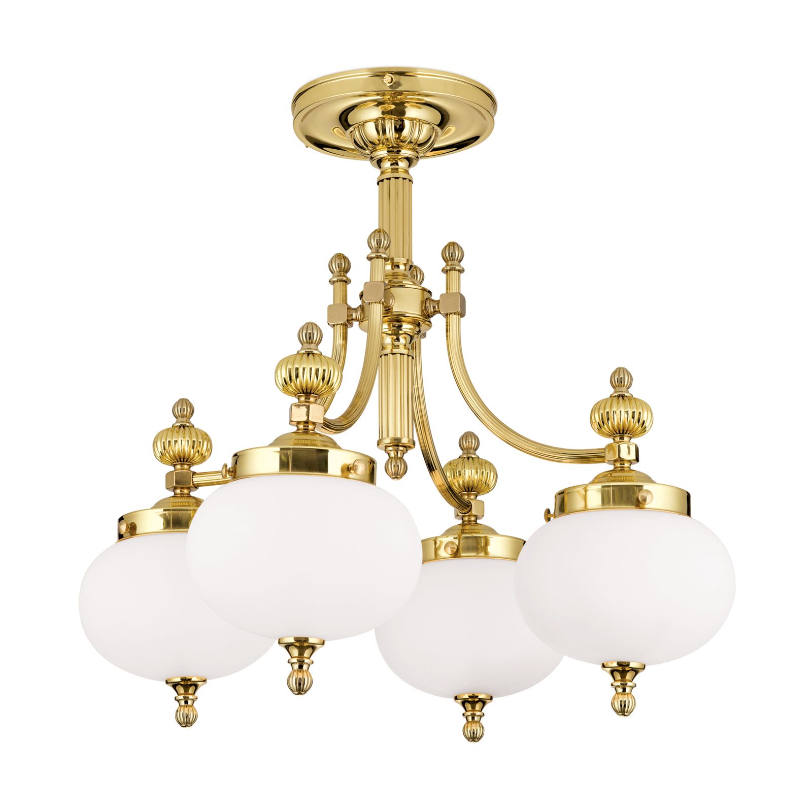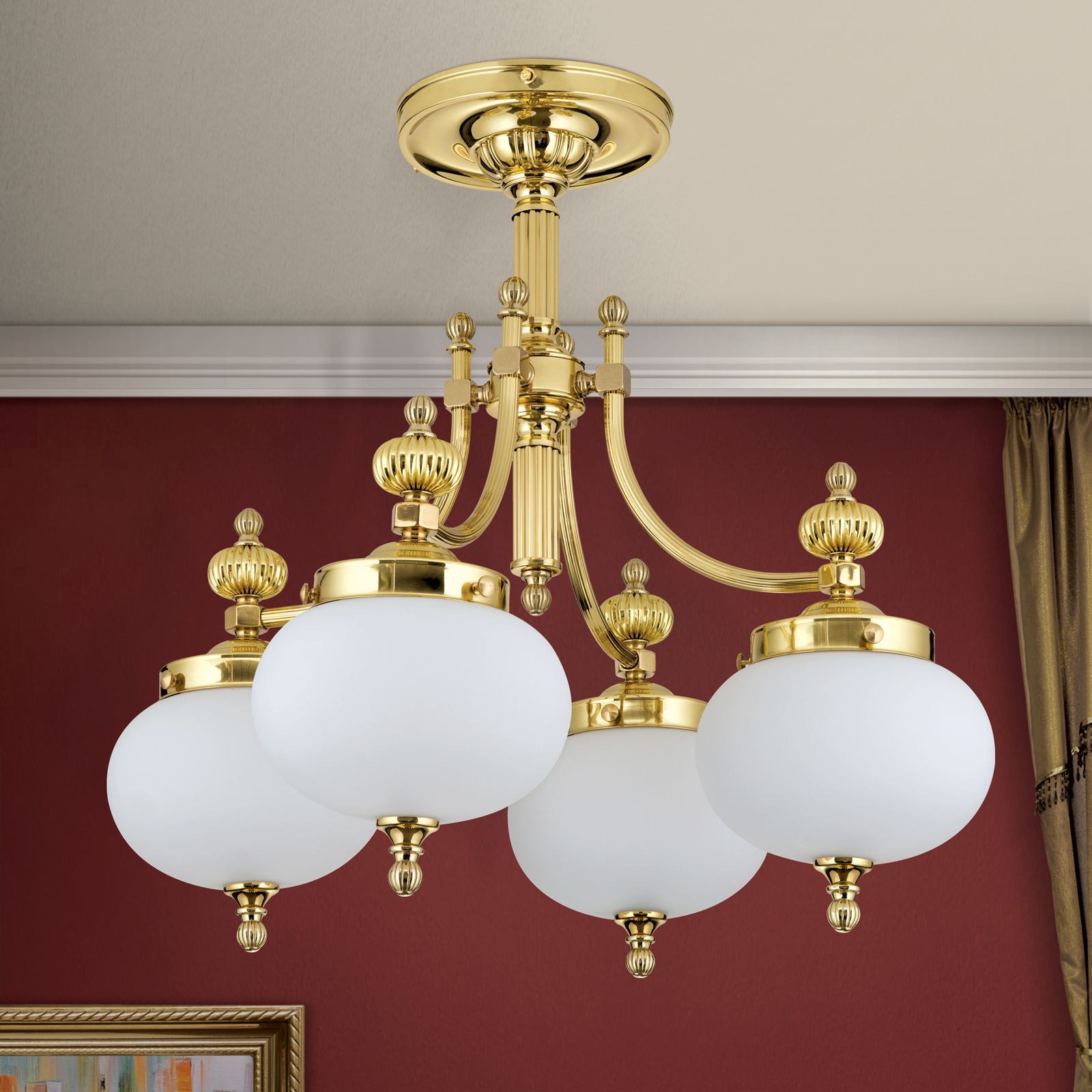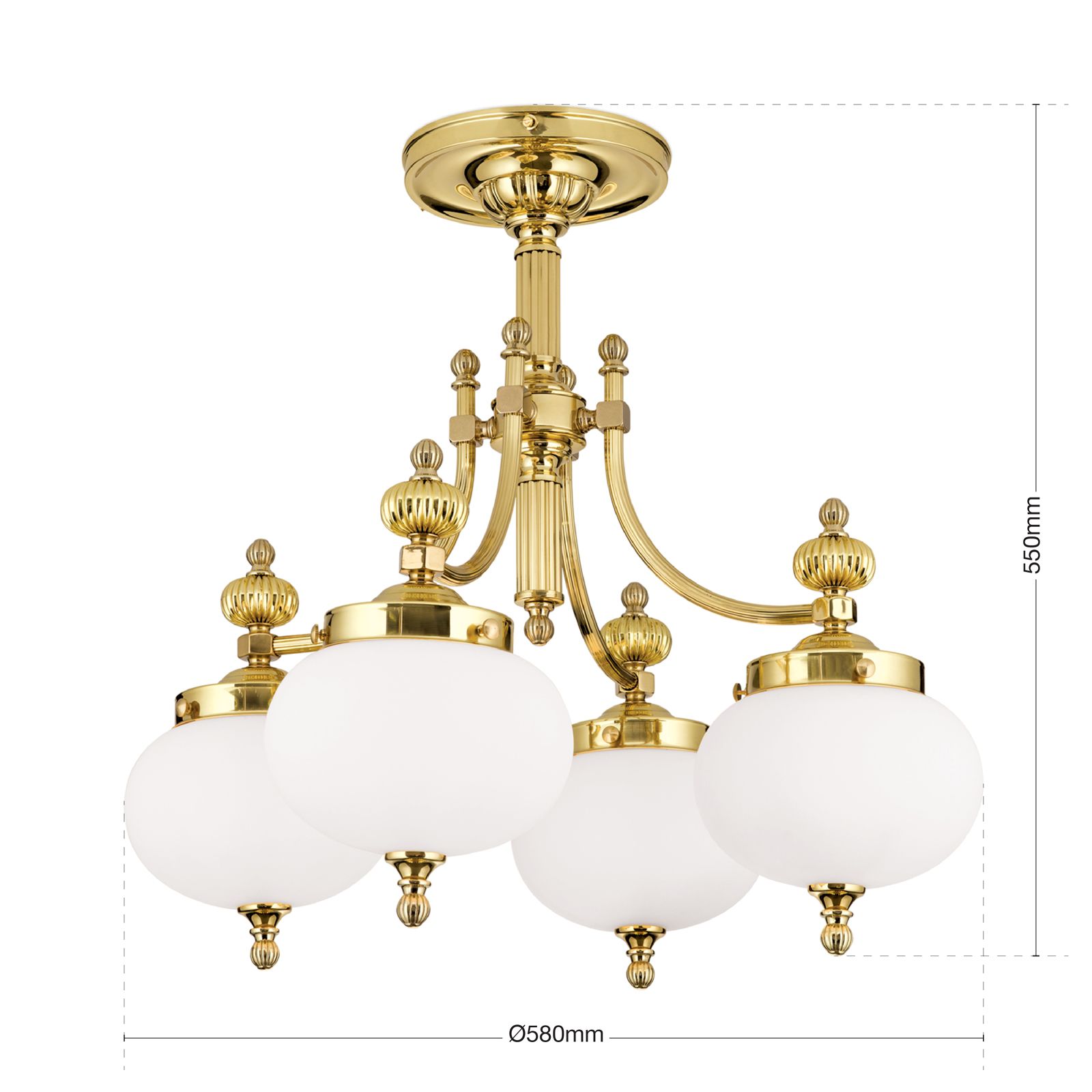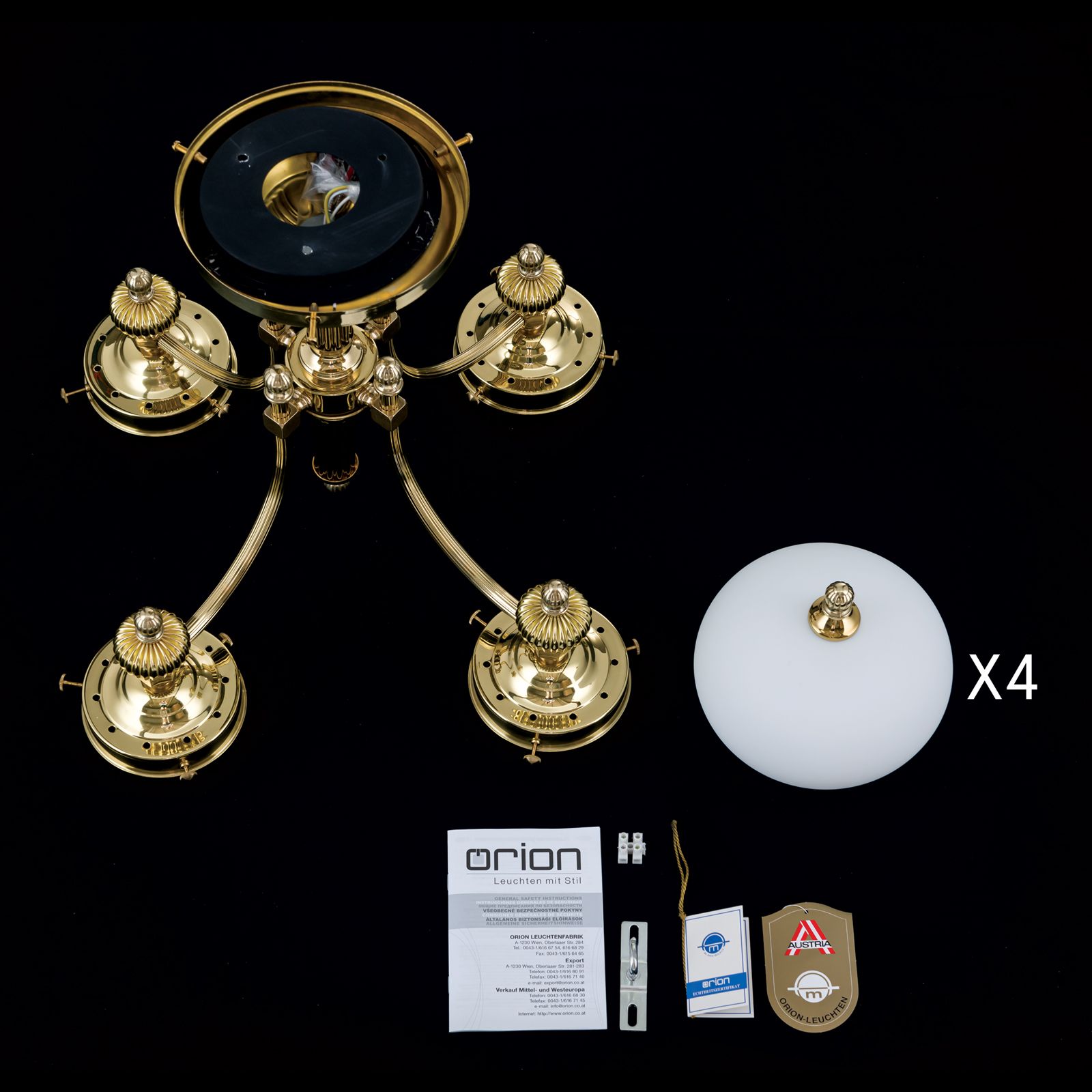 Deckenluster WIENER NOSTALGIE, 4-flammig, Messing-glänzend, mit opal matten Gläsern