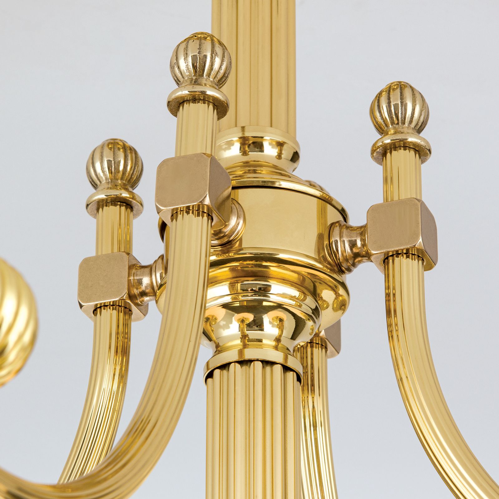 Der Deckenluster aus der WIENER NOSTALGIE-Reihe eignet sich für Ess-, Arbeits- oder Schlafzimmer. Auch ein kleineres Wohnzimmer (bis 20 Quadratmeter) wird in diesem Luster eine hervorragende Lichtquelle finden. Das hochglanzpolierte Messing und die dezenten Verzierungen dienen dabei als vielfältige Reflexionskörper. Das Licht strahlt nach unten ab, zum Beispiel um einem Ess- oder Schreibtisch kräftiges Licht zu spenden. Die klaren Formen müssen nicht ohne schmückende Elemente auskommen: kannelierte Säulen, pokalförmige Aufsätze und abschließende Faltkugeln erfreuen das Auge ebenso wie die elegante Linienführung. Der Luster ist mit vier E27-Fassung zu je maximal 60 Watt ausgestattet. In Kombination mit einem externen Dimmer und dimmbaren Leuchtmitteln können Sie die Lichtintensität an Ihre Bedürfnisse anpassen.