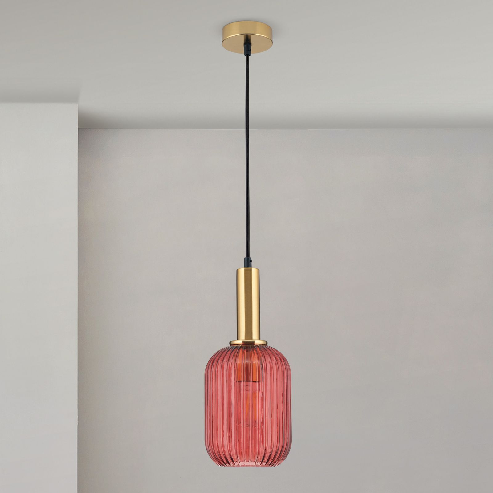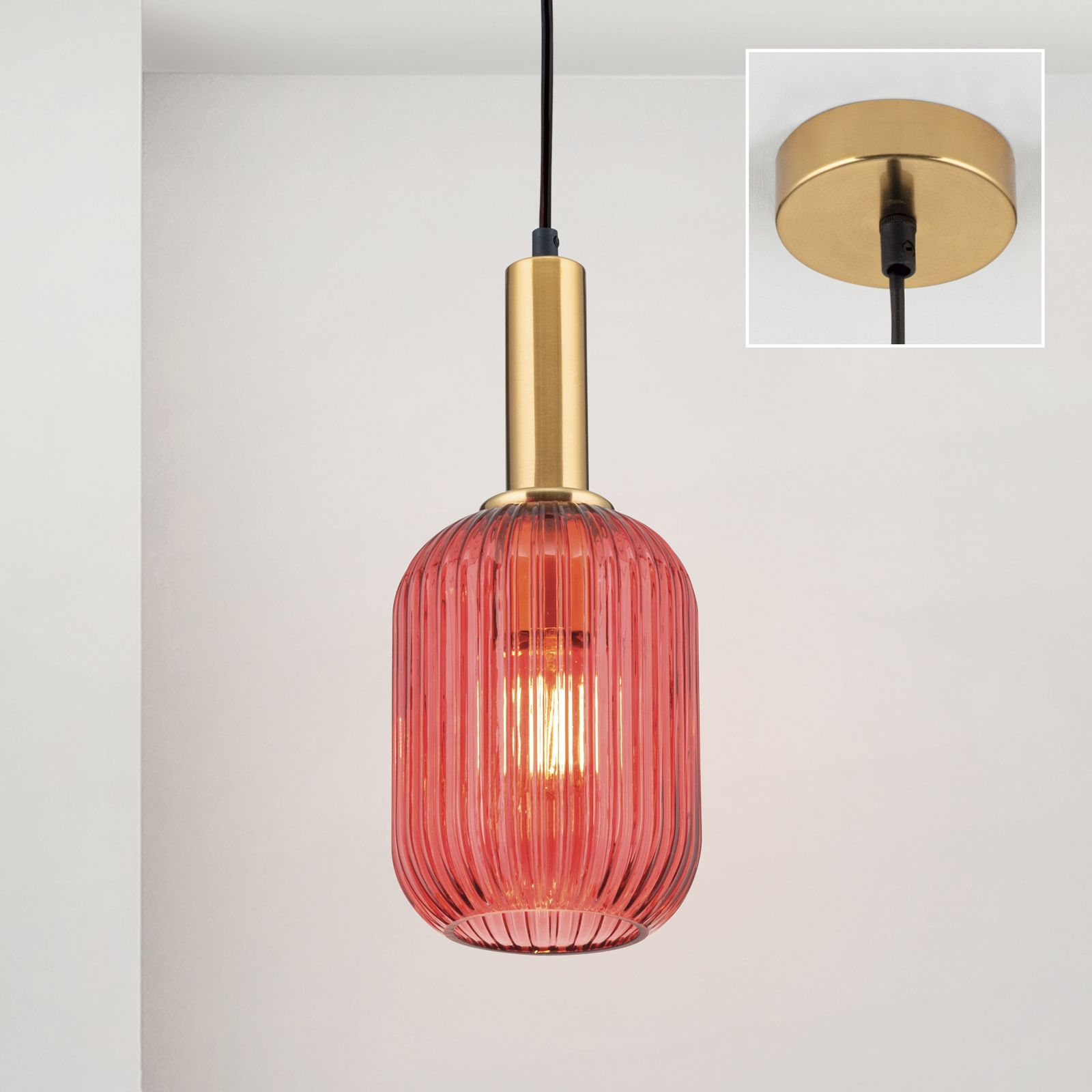 Die Hängeleuchte CARNEVAL besticht durch ihr rotfarbiges Glas mit einem eleganten Rillendekor, das für eine faszinierende Lichtbrechung sorgt. Die Rosette und der Körper sind in einem stilvollen Patina-Farben gehalten, was der Leuchte einen Hauch von Vintage-Charme verleiht. Das Kabel besteht aus hochwertigem Textil in Schwarz, das nicht nur robust und langlebig ist, sondern auch ästhetisch ansprechend wirkt.