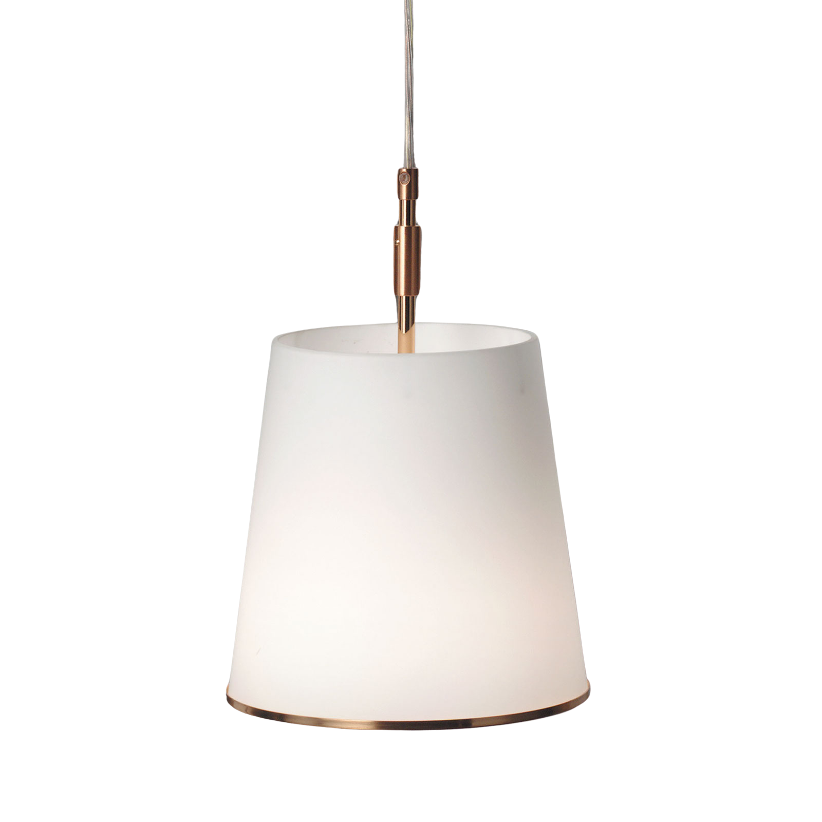 Puristische Eleganz ist es, die die zarte Hängeleuchte der Serie KONUS ausstrahlt. Ihr überzeugendes Design folgt einem einfachen Rezept: höchste Qualität der Materialien und Verarbeitung in Kombination mit ausgewogenen Formen und Proportionen und einer hervorragenden Lichtwirkung. Diese ist dem satinierten, mundgeblasenen Mehrschichtglas geschuldet, aus dem ihr Schirm besteht.