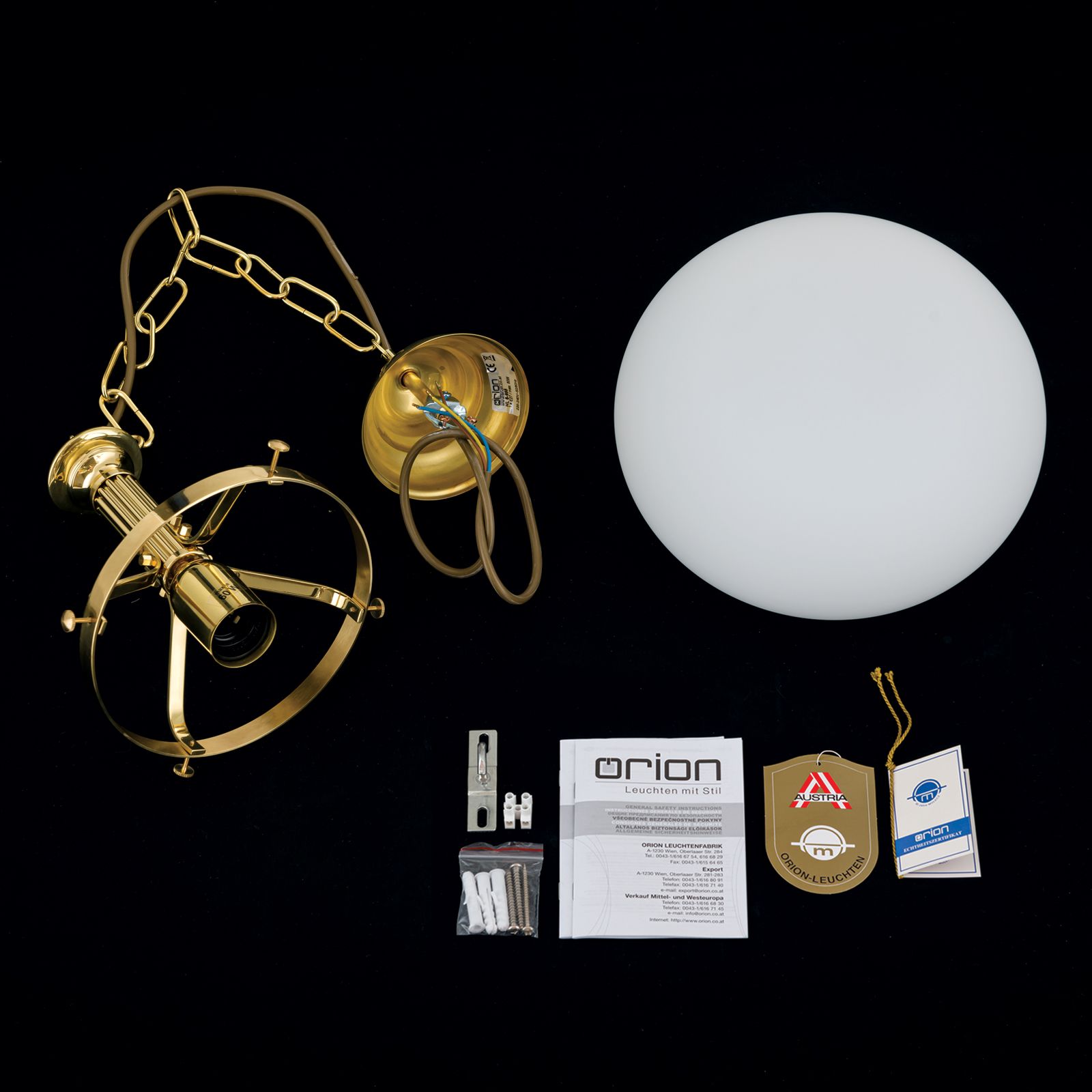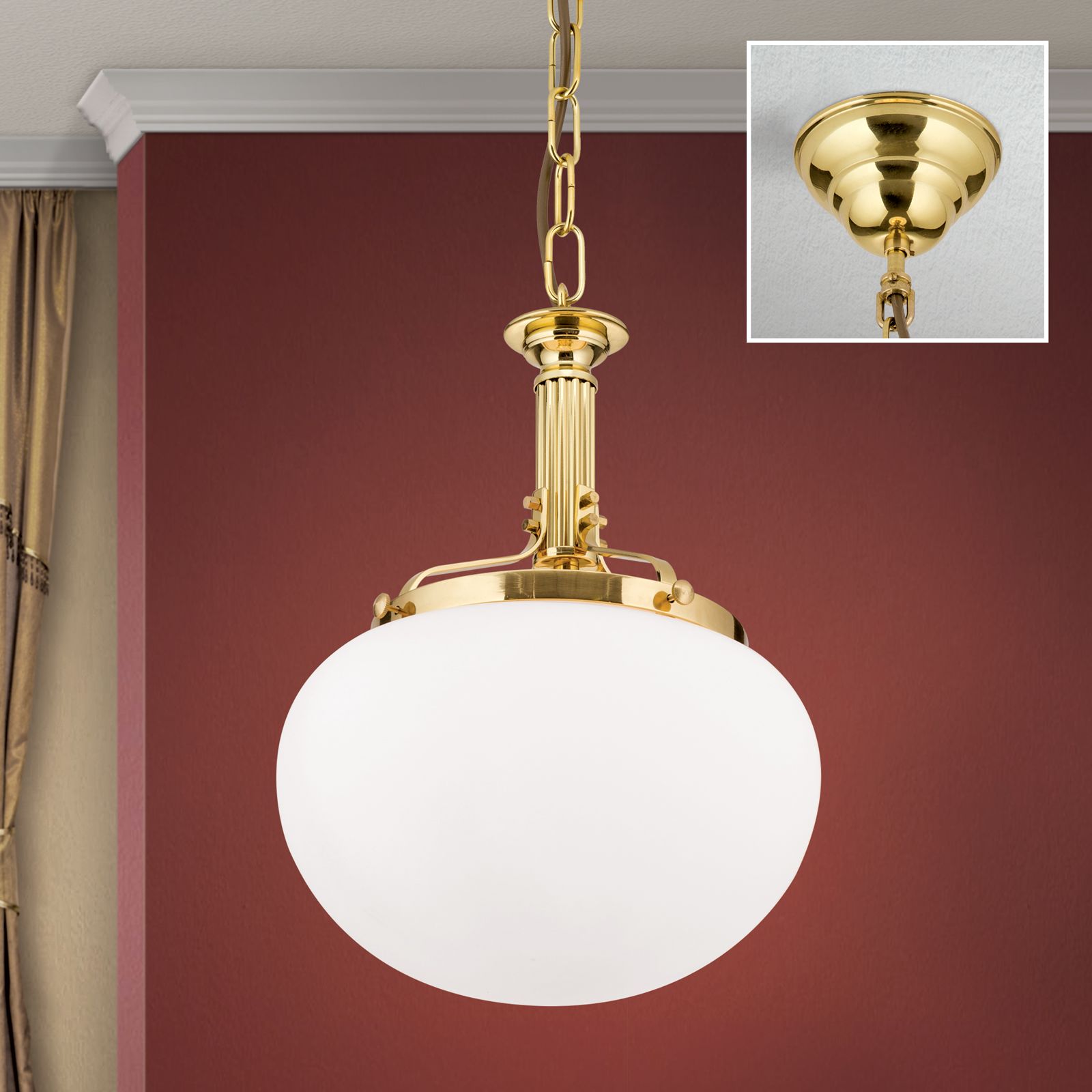 Hängeleuchte WIENER NOSTALGIE, Messing-glänzend, mit opal mattem Glas, 27cm
