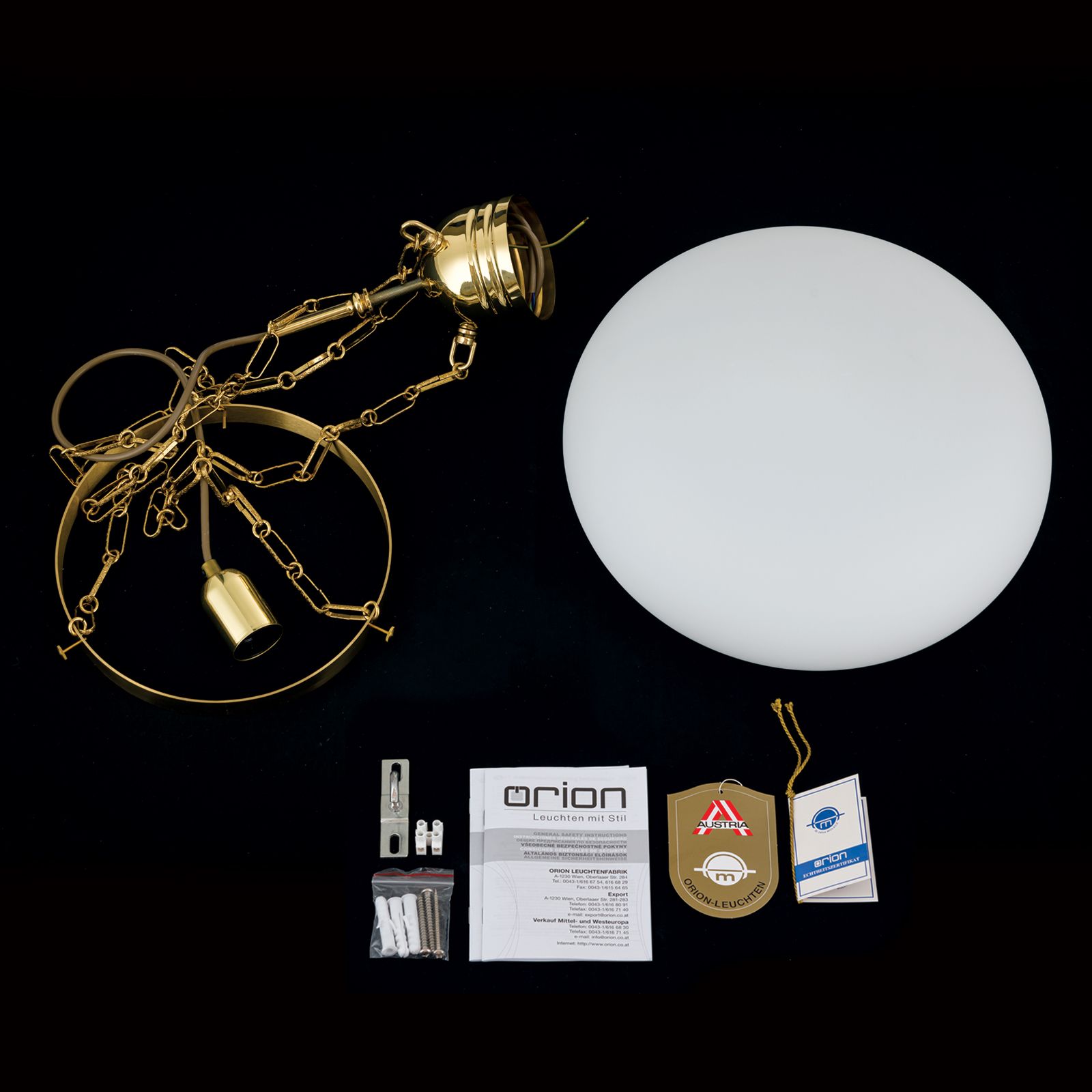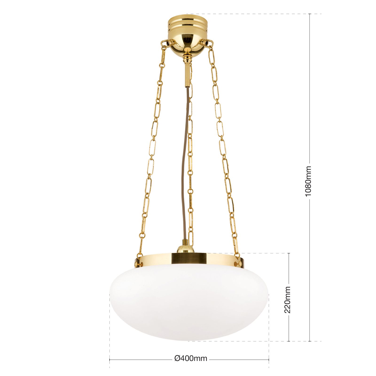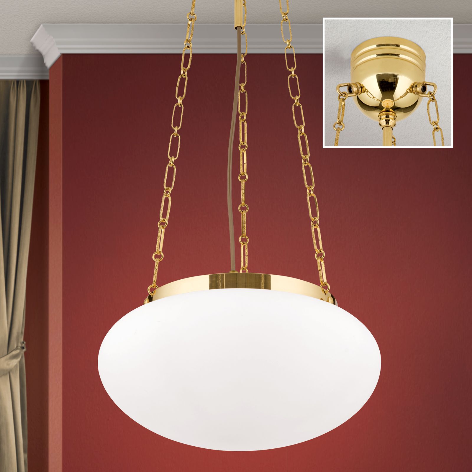 Hängeleuchte WIENER NOSTALGIE, Messing-glänzend, mit opal mattem Glas