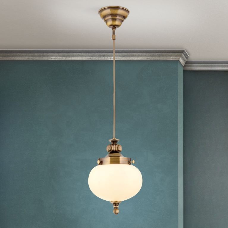 Hängeleuchte WIENER NOSTALGIE, Patina, mit champagne mattem Glas, 18cm