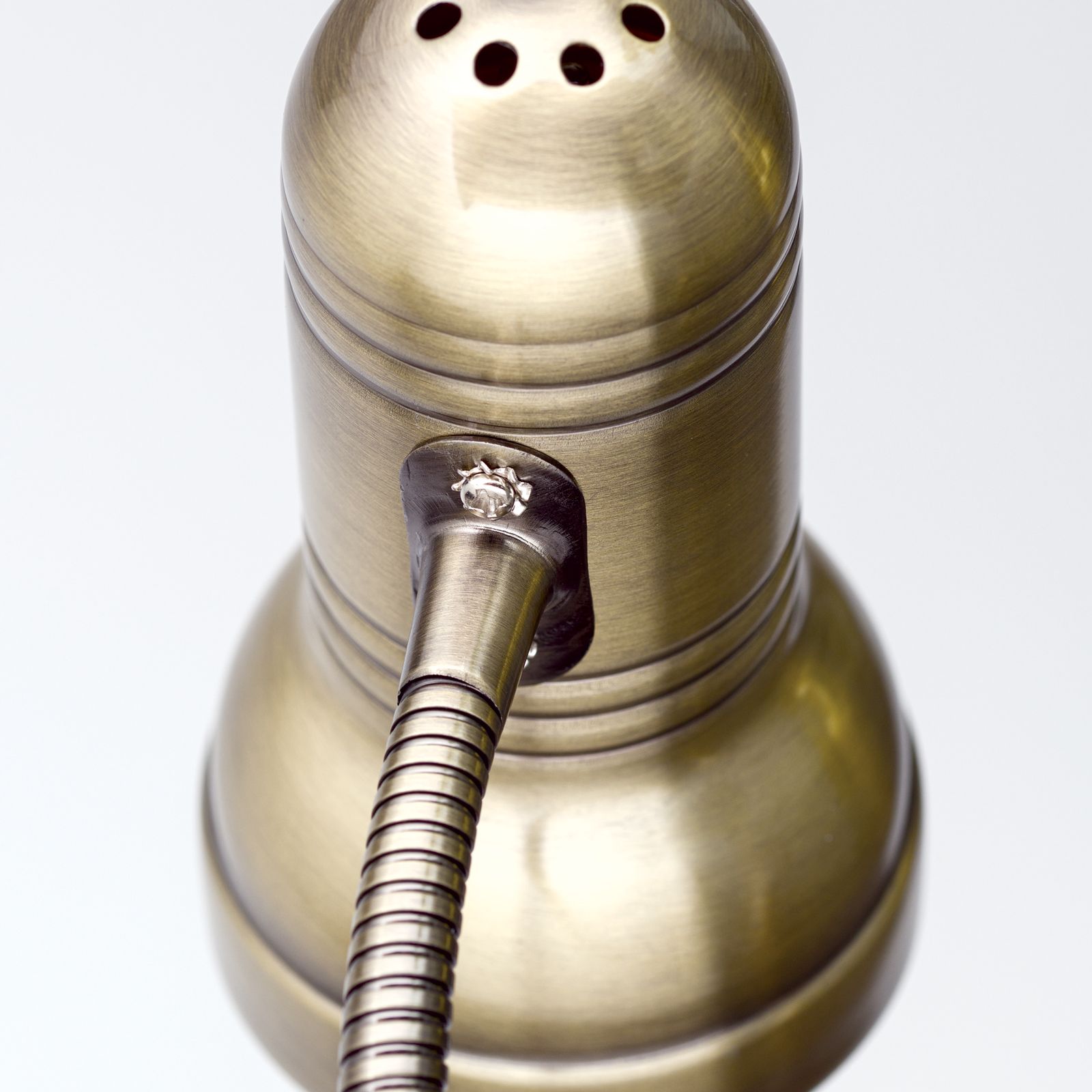 Der kühle Glanz sowohl des Lampenstiels als auch des Lampenkörpers erhalten durch die Spiraloptik und die Rippung des Lampenschaftes ein hochwertiges Designelement. Gleichzeitig besticht die Leuchte durch Schlichtheit, wodurch sie sich harmonisch in jedes Ambiente eingliedert. Der lange, biegbare Lampenstiel erlaubt besonders beim Einsatz in einem Büro oder Arbeitsraum eine flexible Punktbeleuchtung. Einen Arbeitstisch wiederum vermag die Leuchte großflächig und gleichmäßig auszuleuchten. Der Strahler wird mit einer E27-Fassung für maximal 60 Watt ausgeliefert. Bei Verwendung von energiesparsamen Leuchtmitteln wird überdies dem Umweltschutzgedanken Rechnung getragen. Perfekt geeigent sind dafür matte E27-LED-Lampen in Tropfenform. Den Klemmstrahler WILHELM finden SIe sind auch in Kurz- oder Patinaausführung.