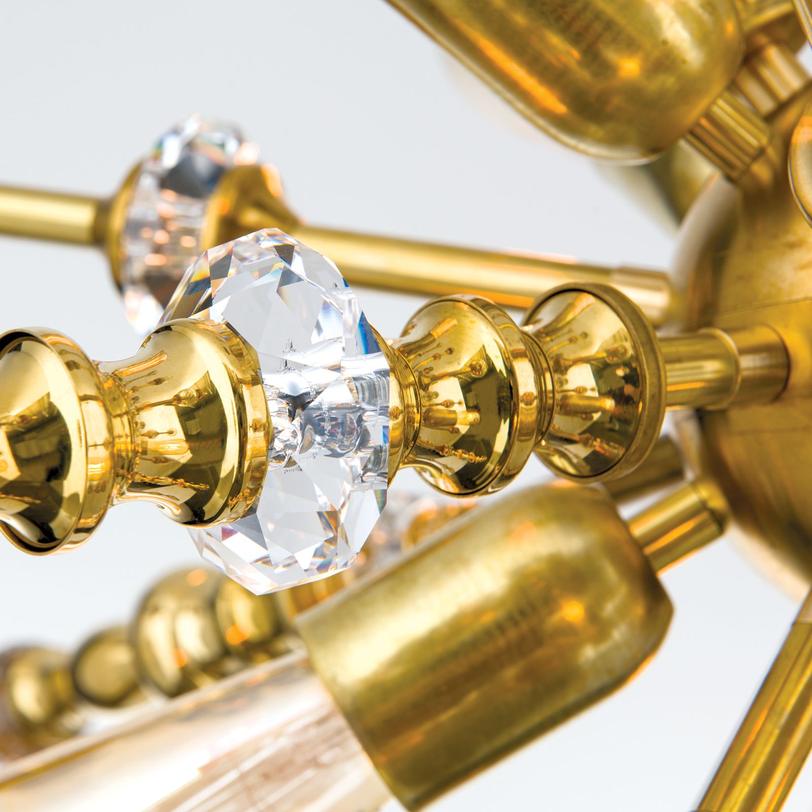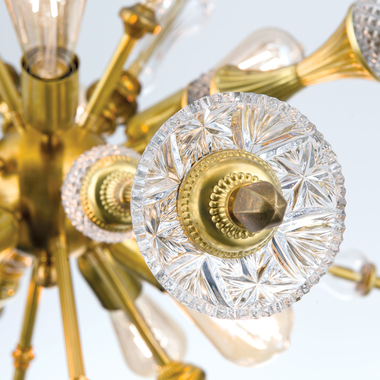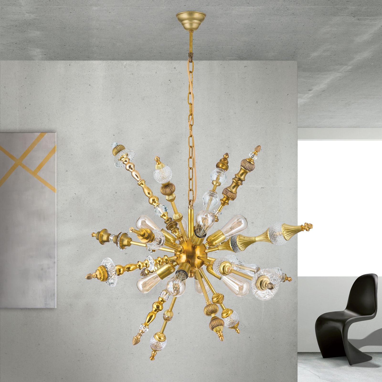Der kleinere Luster aus der "Design by Orion" Serie BAROCOCO ist ein modernes Design, das sich aus Elementen des Barocks und des Rokokos zusammensetzt. Inspiriert von dem Space Age der Fünziger- und Sechzigerjahren, vermittelt es sowohl den nostalgischen Charme der Vergangenheit als auch die Vision einer futuristischen Zukunft, was den BAROCOCO ein besonderes Flair verleiht. Es ist ein Stil, der Ihrem Interieur Charakter und Ausdruck verleiht und gleichzeitig unser historisches Gedächtnis in Erinnerung ruft. Jedes Stück ist etwas ganz Besonderes und wird Ihr Zuhause in eine Wohlfühloase verwandeln. Die goldene Oberfläche ist aus Messing gefertigt und reflektiert natürliches wie künstliches Licht, sodass es eine goldene Wärme zu jeder Tages- und Nachtzeit erzeugt. Finish: Messing glänzend, Messing roh/ vergoldet/ verchromt, patiniert/ Wunsch-Finish auf Anfrage
