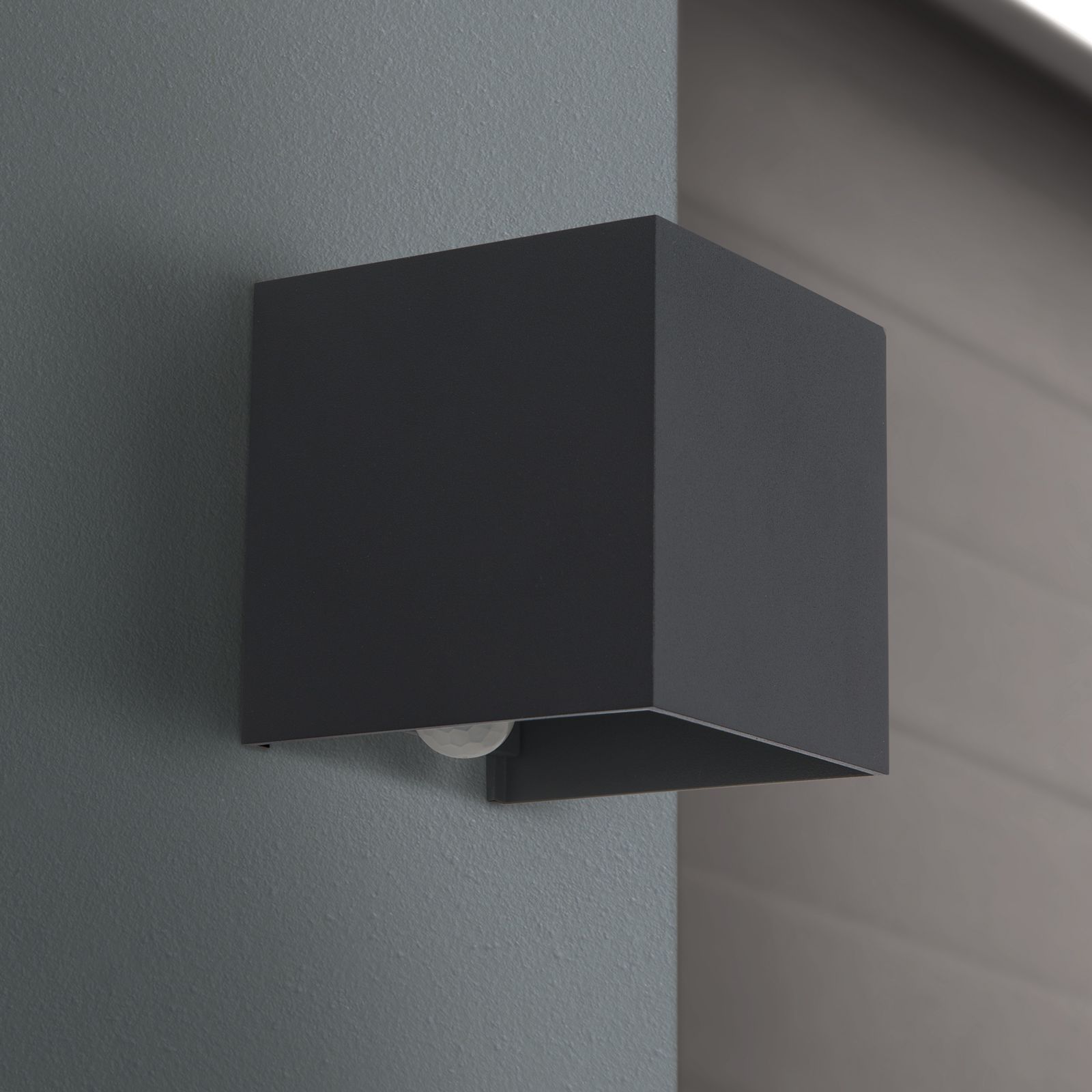 LED Außenwandleuchte CUBE-S, anthrazit, Bewegungs- und Dämmerungssensor