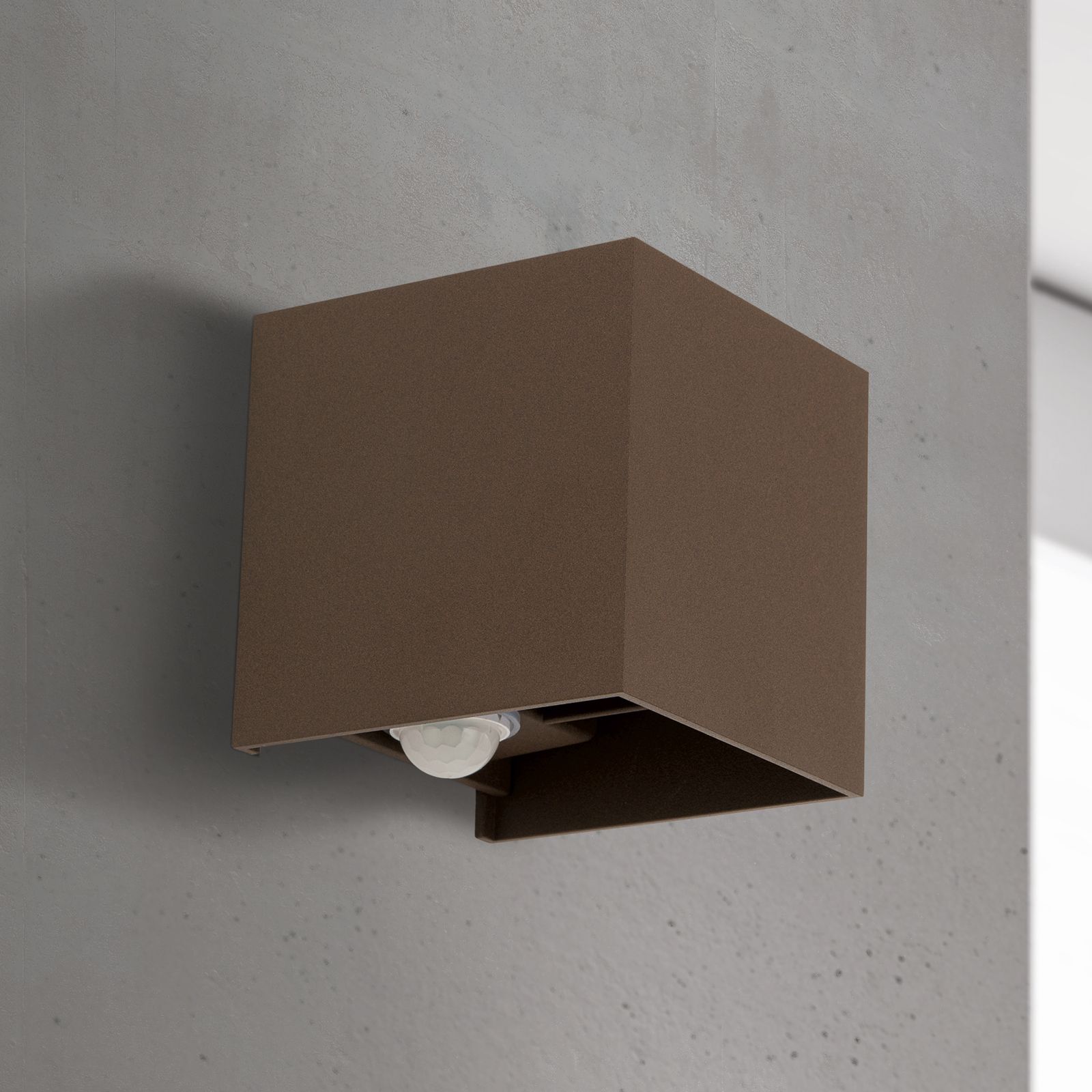 LED Außenwandleuchte CUBE-S, corten, Bewegungs- und Dämmerungssensor
