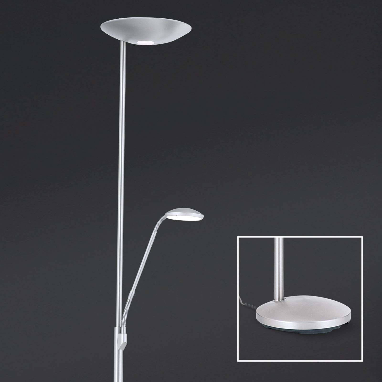 Die Stehleuchte verfügt zusätzlich über eine schwenkbare Leselampe, wodurch sich das Licht nach Ihren Bedürfnissen und Anforderungen gezielt einsetzen lässt. Die Lichtintensität sowie die Lichtfarbe (2.000-6.000 Kelvin) lassen sich über den Push-Dimmer stufenlos steuern.