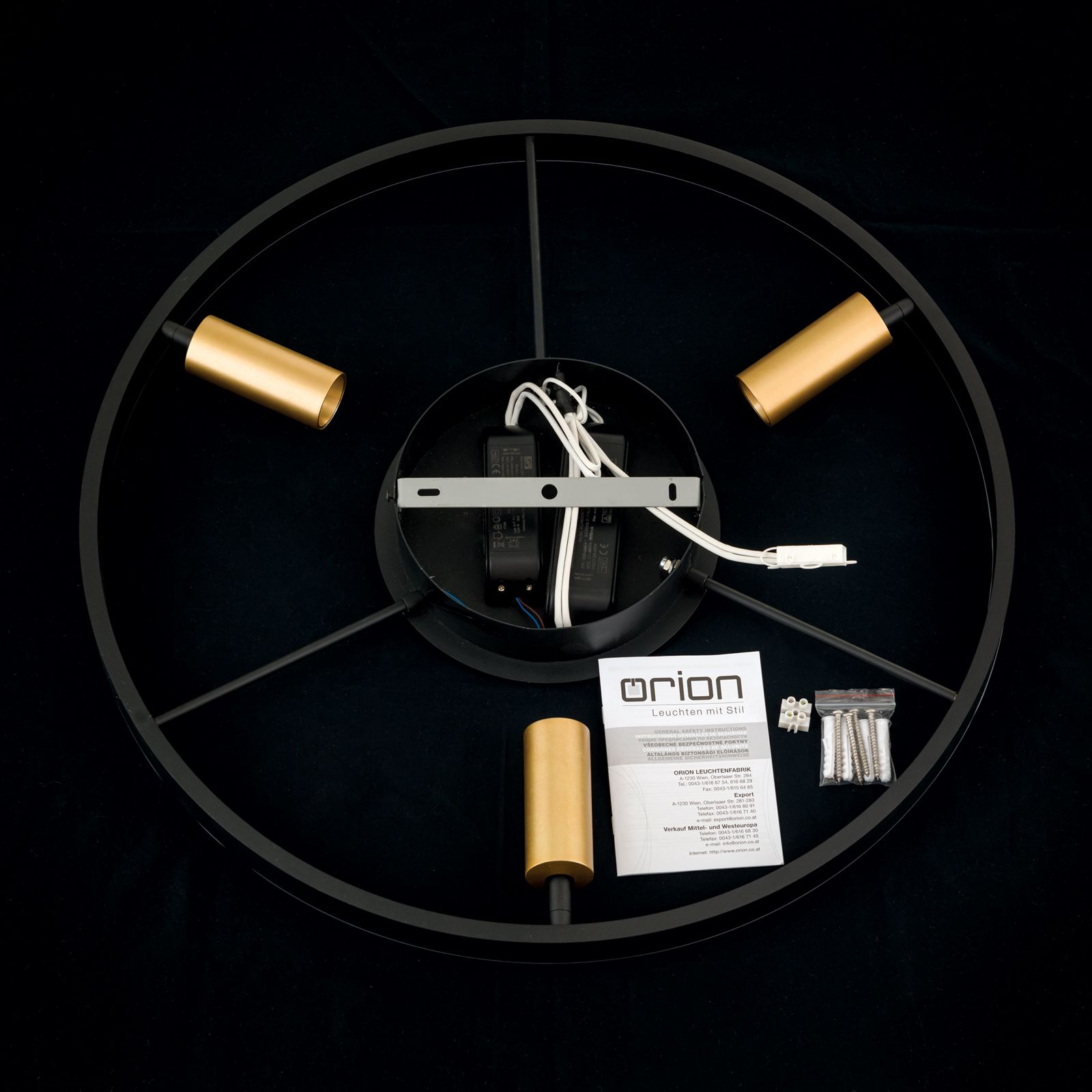 Die Kombination aus schwarzem Ring und goldenen Strahlern verleiht der LED-Leuchte einen edlen und modernen Look, der mit unterschiedlichen Einrichtungsstilen harmoniert.