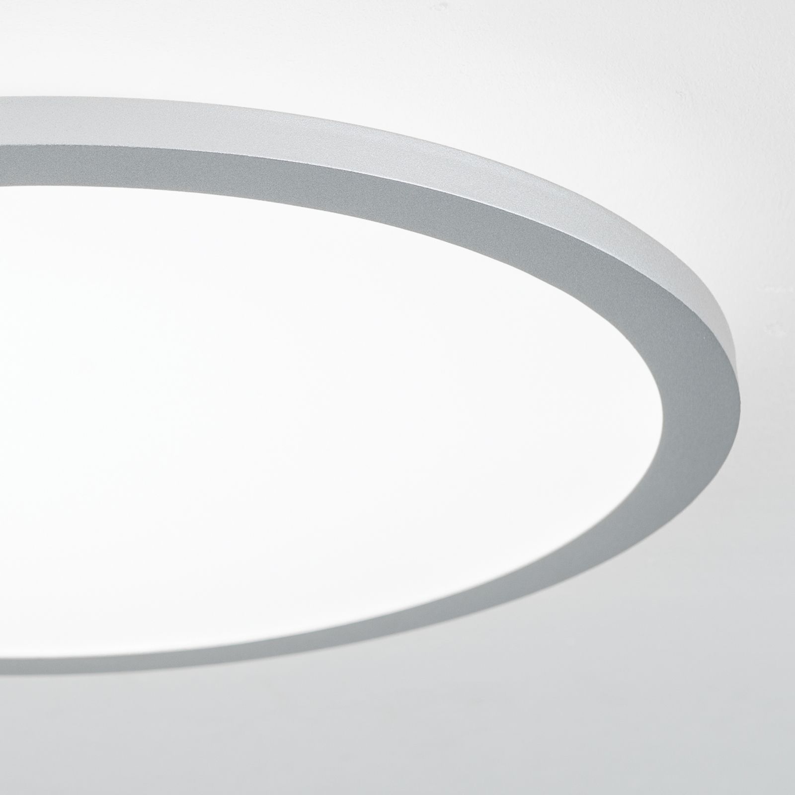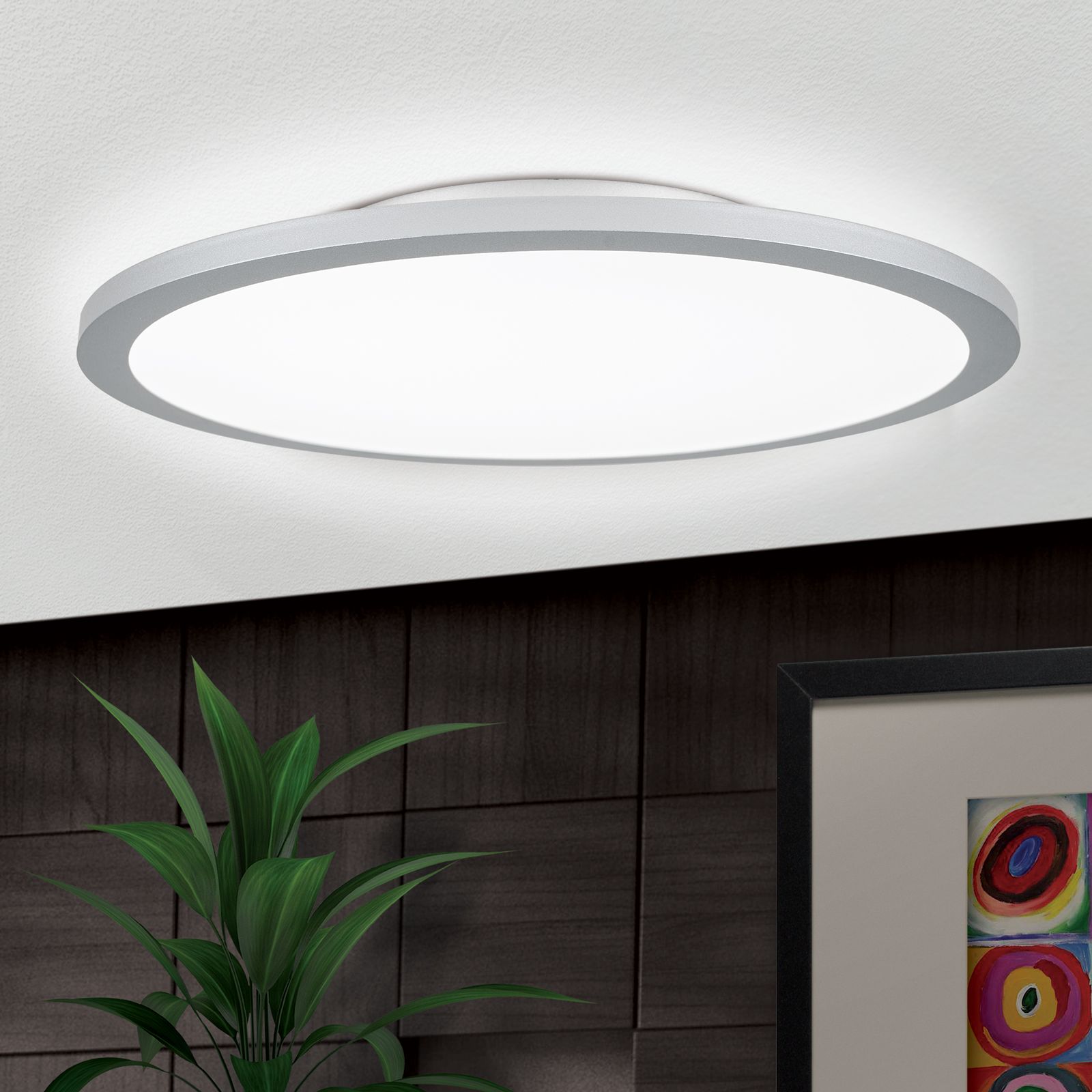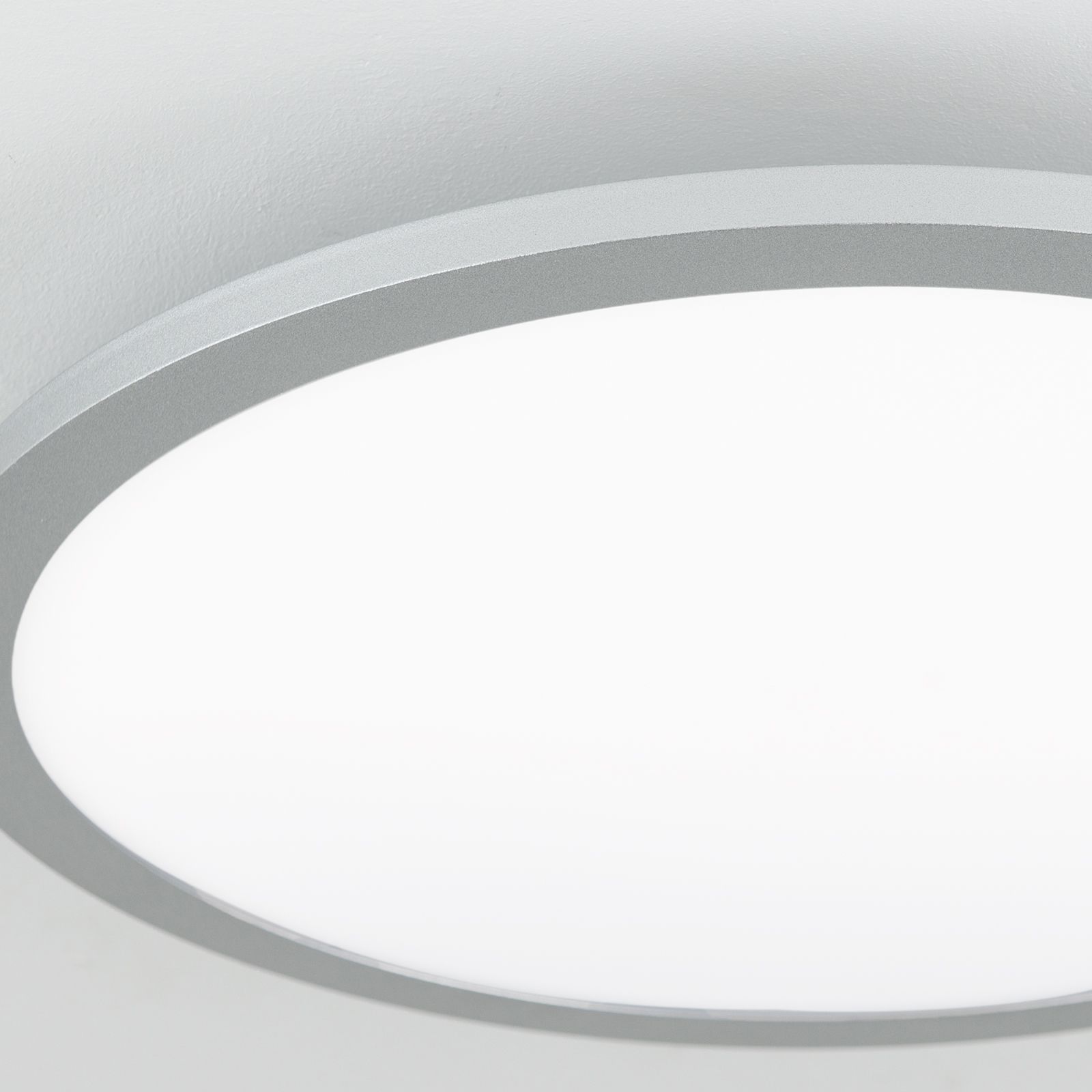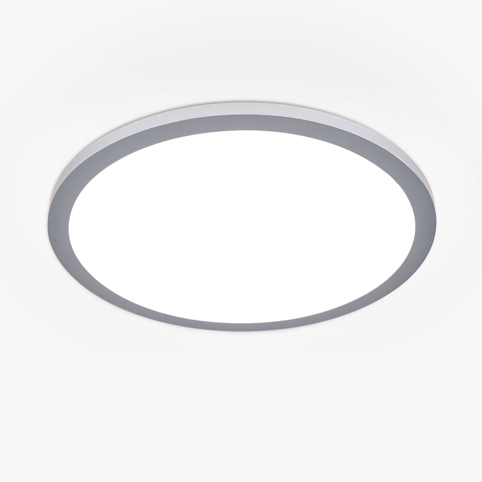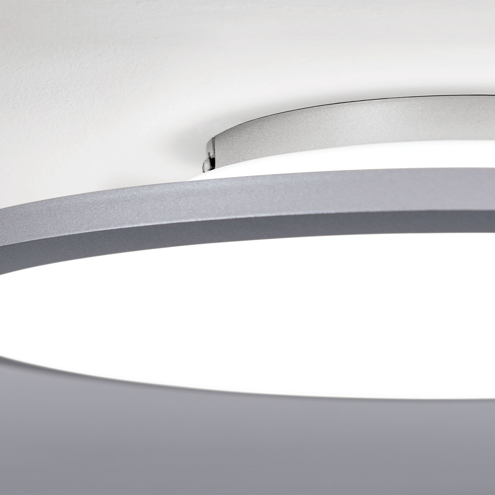 Die Deckenleuchte aus der Serie GREG lässt sich aufgrund ihres funktionalen Aussehens leicht in Räume mit zeitgenössischem Ambiente integrieren. Die schlichte Leuchte besteht aus einem titanfarbenen Metallring, welcher eine satinierte Kunststoffabdeckung umfasst. Mit einer Höhe von nur 5 cm eignet sie sich hervorragend für die Grundbeleuchtung in Räumen mit geringer Deckenhöhe. In Kombination mit einem Phasenabschnittdimmer oder LED-Dimmer ist die Leuchte dimmbar und kann so zu einem gemütlichen Flair beitragen.