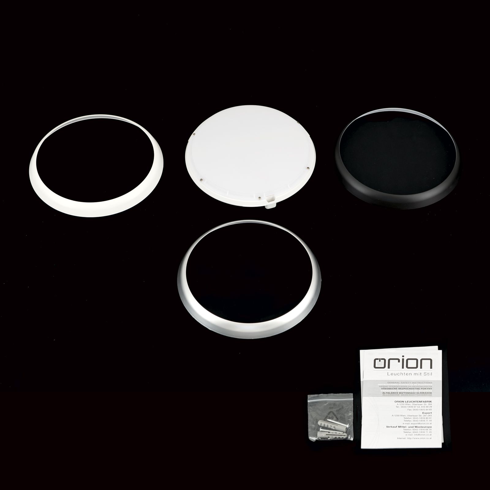 - inkl. austauschbare Farbringe in Weiß, Schwarz und Silber