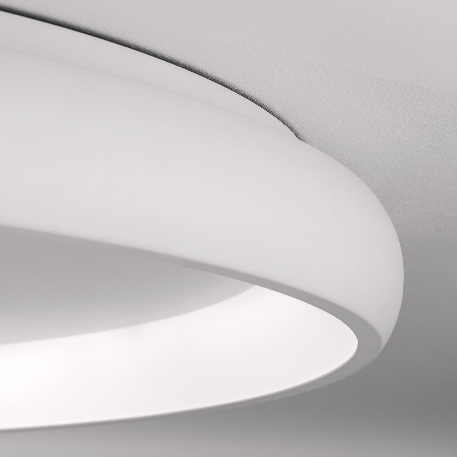Die weiß-sandgestrahlte Deckenleuchte der Produktserie VENUS macht sich eine einfache Designregel zunutze: geometrische Grundformen empfindet das Auge als angenehm. Die Kraft liegt hier in der Unaufgeregtheit, dem Gewohnten, Schlichten und vor allem beruhigend Symmetrischen.