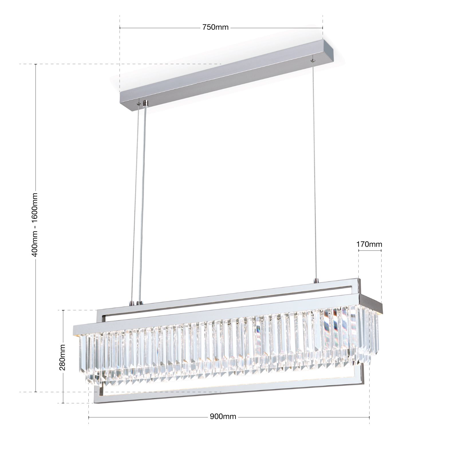 LED Hängeleuchte PRISM, länglich, chrom
