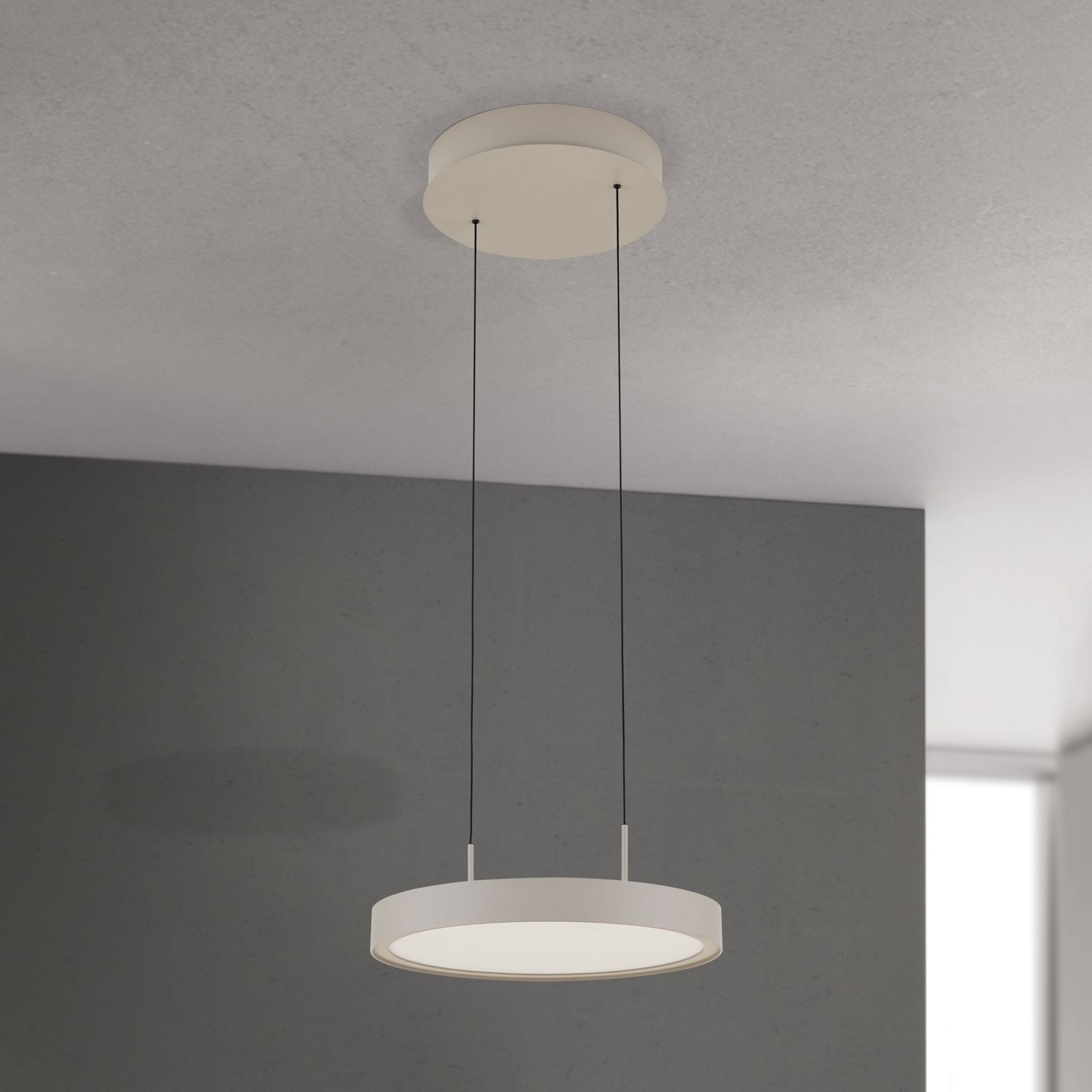 Die LED Hängeleuchte TEIDE überzeugt mit ihrer eleganten, runden Formgebung und pulverbeschichteten Oberflächen in edlem Khaki oder Schwarz-matt. Ihr minimalistisches Design fügt sich harmonisch in verschiedenste Einrichtungsstile ein – ob im Wohn- oder Esszimmer, in der Küche, dem Schlafzimmer, Arbeitszimmer/Büro oder im Flur/Vorraum.
