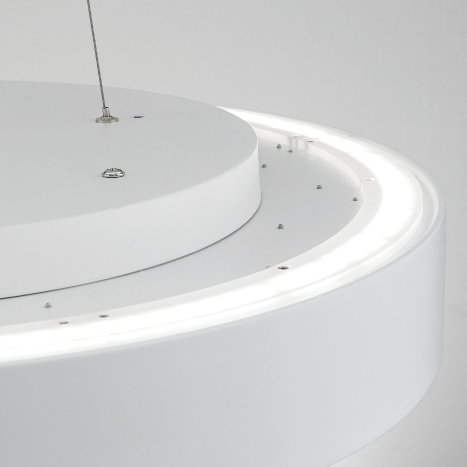 Erleben Sie die perfekte Kombination aus Funktionalität und Stil mit der LED Hängelampe VARIO. Mit einem Durchmesser von 60 cm ist diese elegante Lampe die ideale Beleuchtungslösung für moderne Wohnräume, Büros und Konferenzräume.