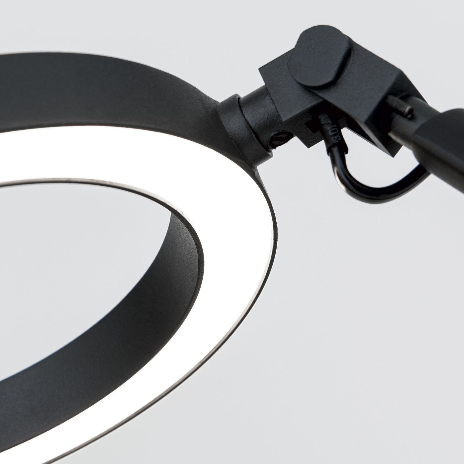 Die LED Tischleuchte RINGO ist nicht nur eine Lichtquelle, sondern auch ein stilvolles Element für Ihr Zuhause oder Büro. Ihr modernes Design in Schwarz und die flexiblen Chrom-Gelenke ermöglichen es, die Höhe der Leuchte von 40 cm bis 75 cm anzupassen.