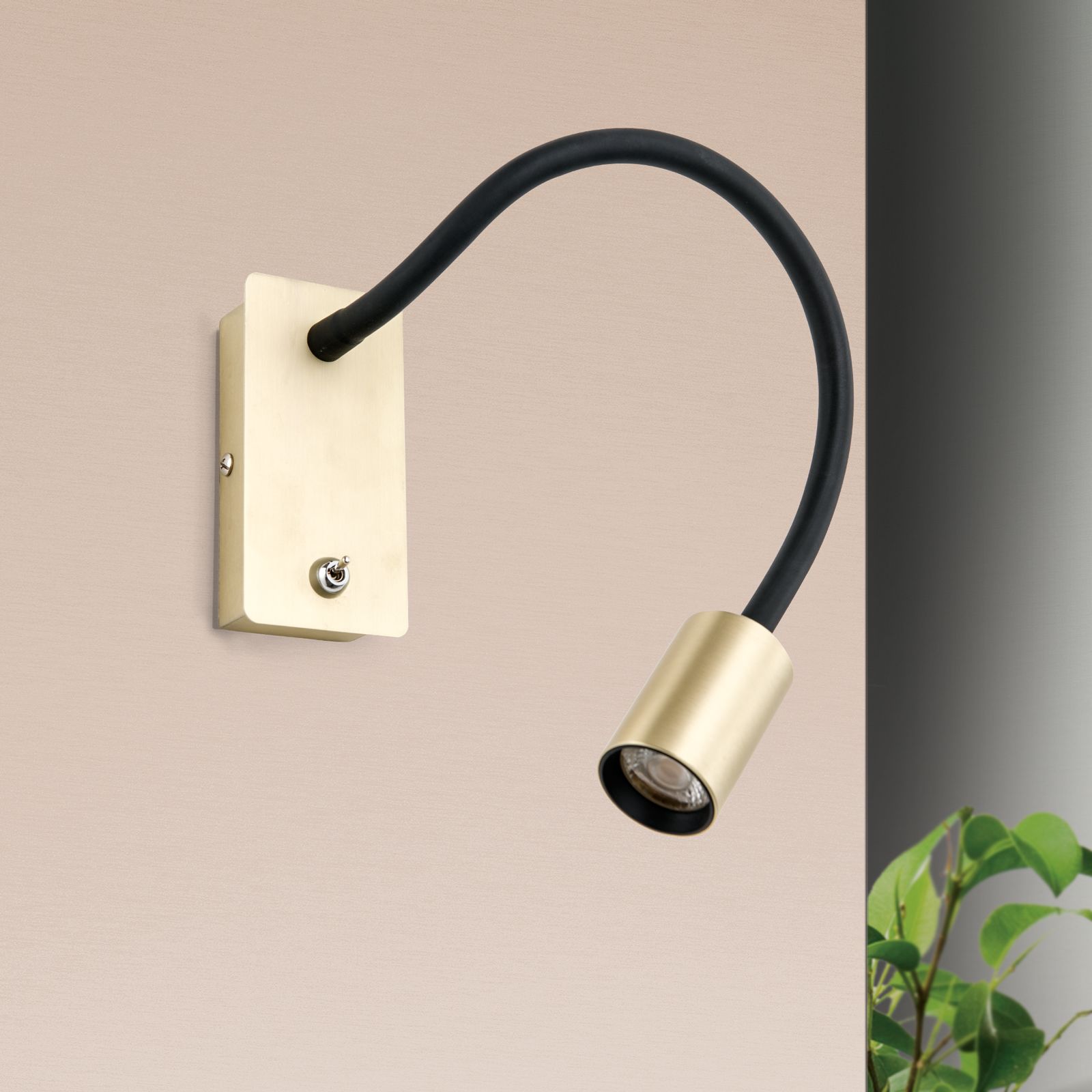 Sie ist mit moderner LED-Technik und einer Lichtleistung von 300 Lumen ausgestattet und verfügt über warmweiße LEDs, die ein warmes und behagliches Licht erzeugen. Aufgrund ihrer Ausführung als Spotlight gibt sie ihr Licht gerichtet ab und strahlt nicht in die Umgebung. Ihr langer Schwanenhals mit einer schwarzen Textilummantelung ermöglicht es, den Leuchtenkopf flexibel auszurichten, weshalb sie die ideale Leuchte für das Betthaupt Ihres Schlafzimmers und wie gemacht für Leseratten ist, die ihre Partner nicht stören möchten. Mit dem Schalter auf der Zierplatte kann die Wandleuchte komfortable bedient werden.