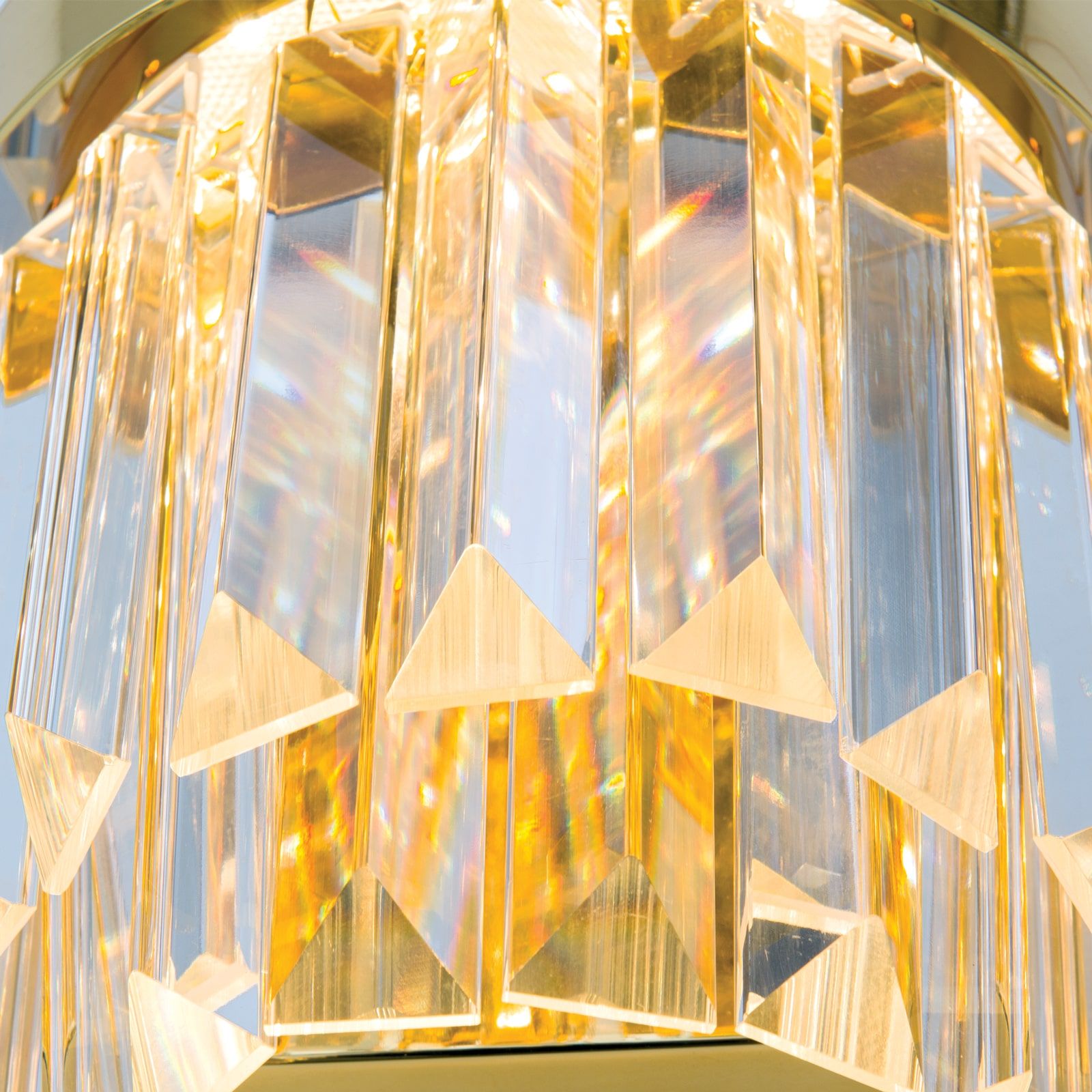 Neben der Wandleuchte sind in der dimmbaren Serie PRISM auch Kristallluster sowie Hänge- und Deckenleuchten erhältlich.