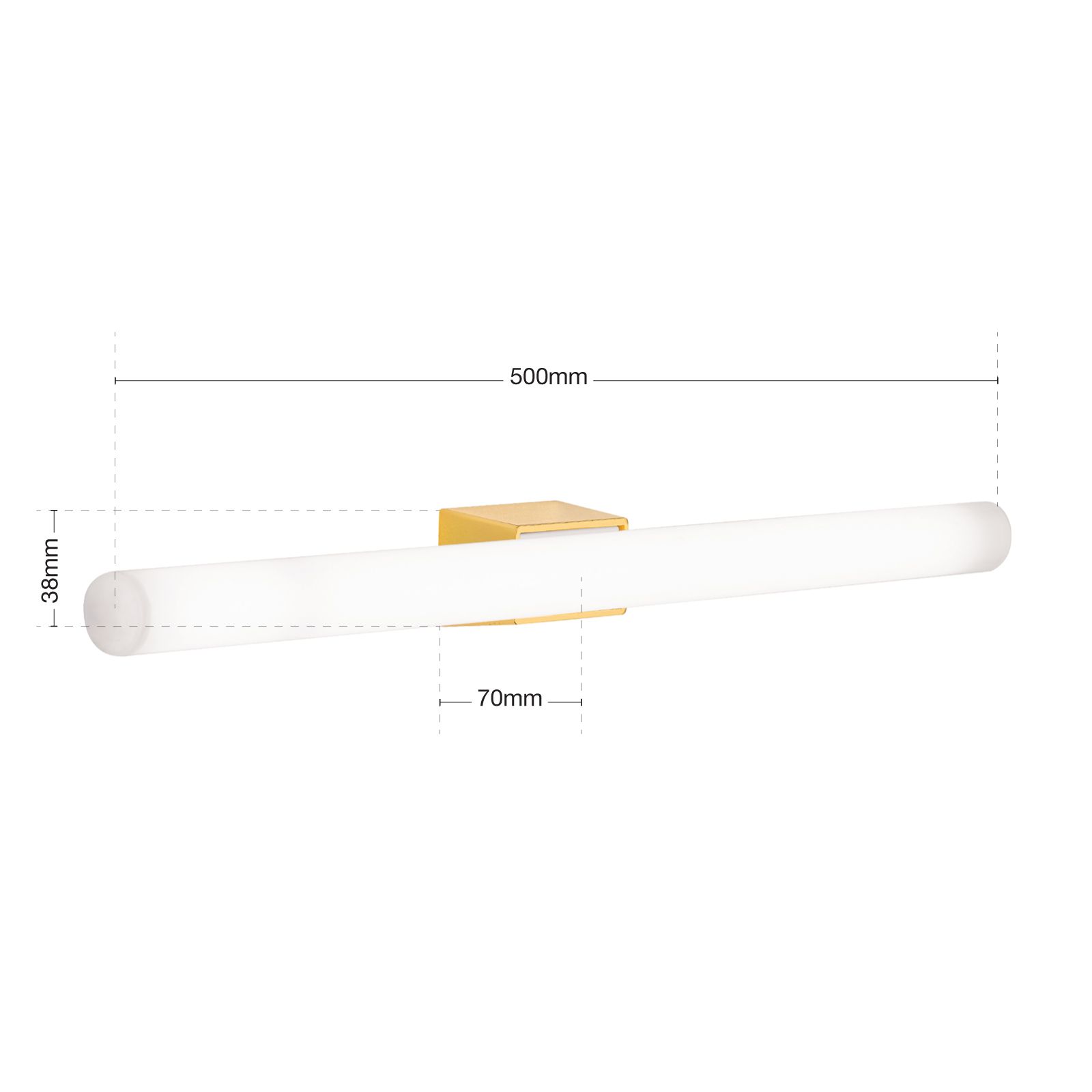 VISAGIST ist eine äußerst moderne Wandleuchte, die lediglich aus einem rechteckigen Sockel und einem Leuchtmittel in Röhrenform besteht. Einer Anbringung über einem Spiegel im Vorraum, um sich das letzte Mal zu begutachten, bevor man aus dem Haus geht, steht nichts im Wege. Der metallene Sockel hat ein messingfarbenes Oberflächenfinish, auf dem die Linienlampe befestigt ist. Diese ist mit einer Leistung von 8 Watt ausgestattet und gibt mit ihren 680 Lumen Lichtstrom warmweißes Licht ab. Im Lieferumfang ist die Linienlampe inbegriffen.