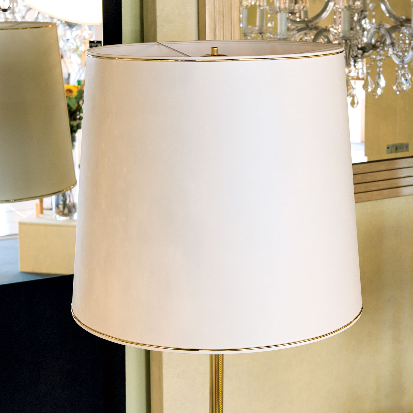 Lampenschirm Stoff 12-4430, Ø 500 mm, Creme mit Goldkante