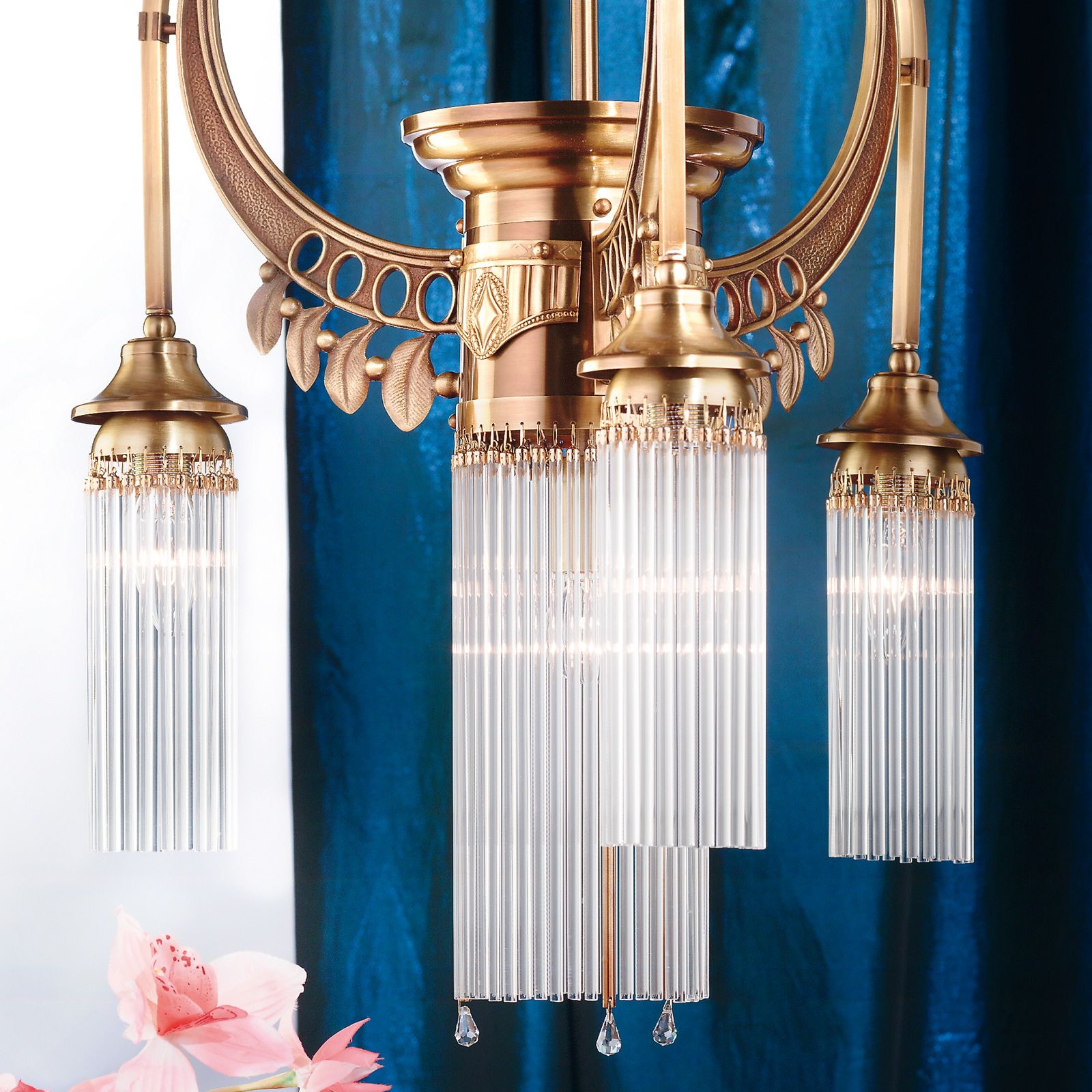 Luster ADELE, 4-flammig, Altmessing, mit Stäbchen