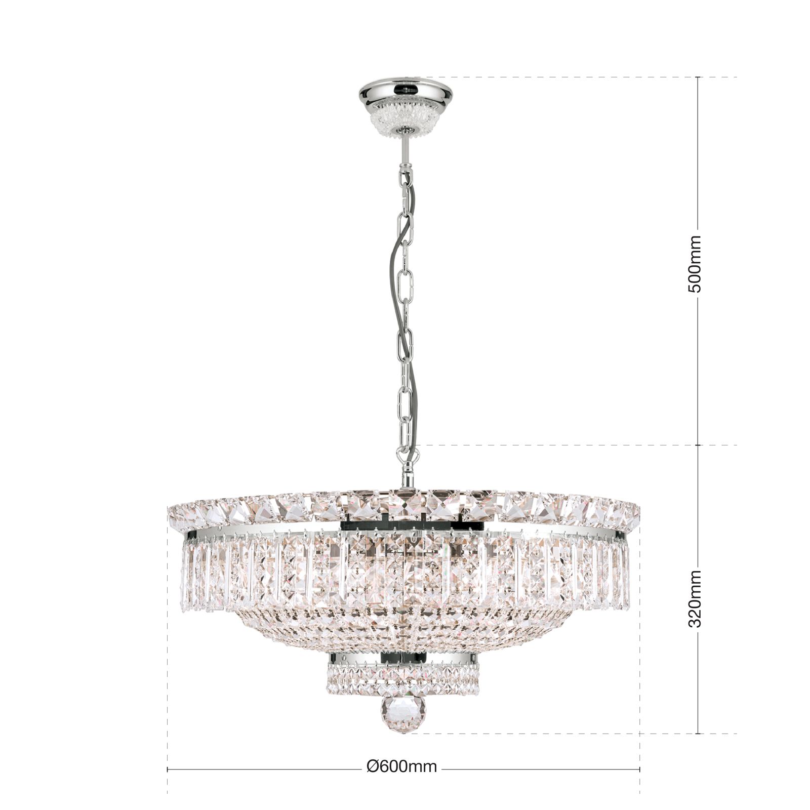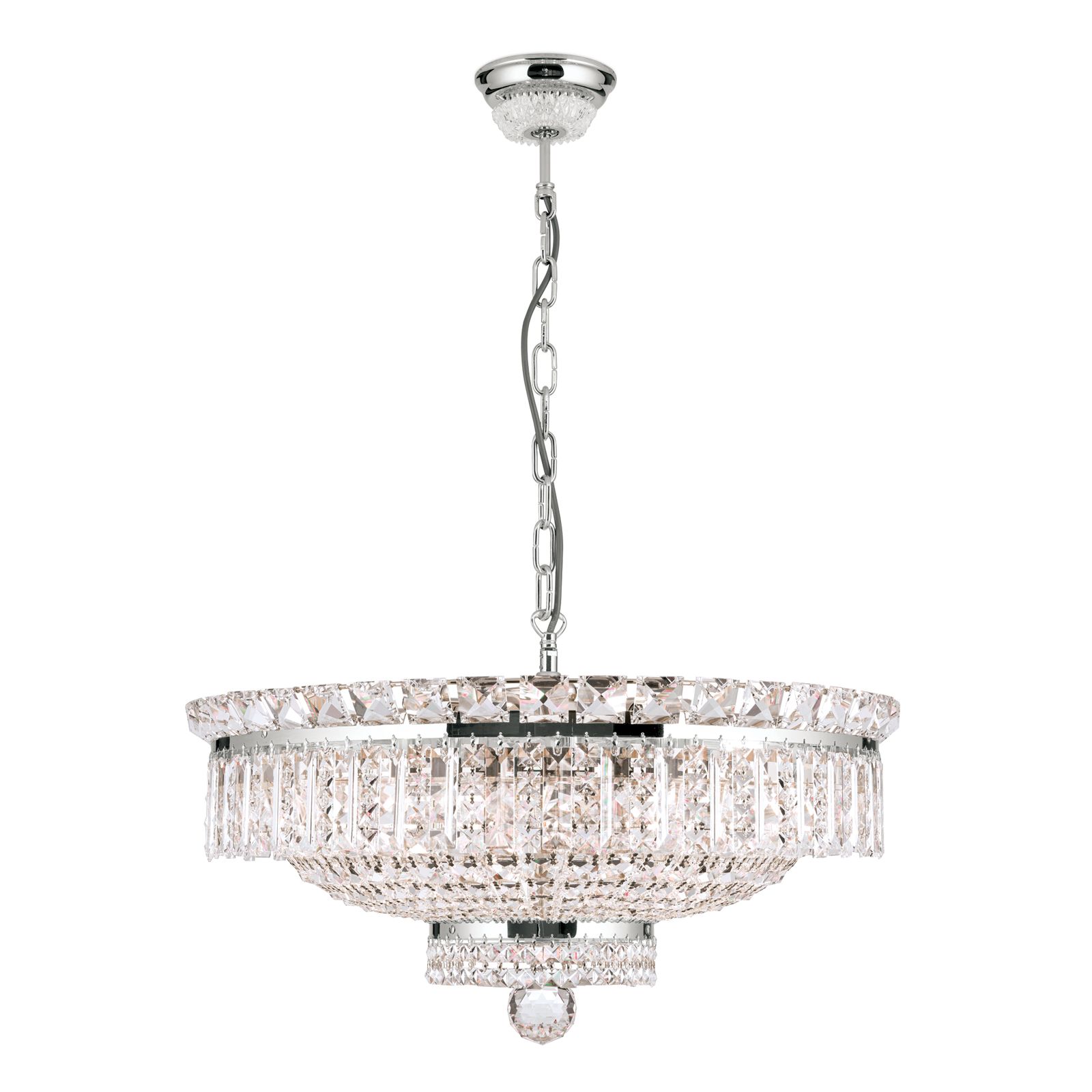 Für eine glanzvolle Ausleuchtung Ihrer vier Wände sorgt der eindrucksvolle Kristallkronleuchter AMBASSADOR. Einer Anbringung im Eigenheim, wie etwa einem Wohnzimmer oder großzügigen Eingangsbereich oder als exklusives Beleuchtungsaccessoire in einem Büro-Besprechungsraum steht nichts im Wege.