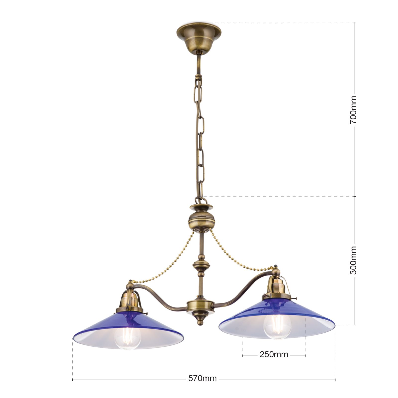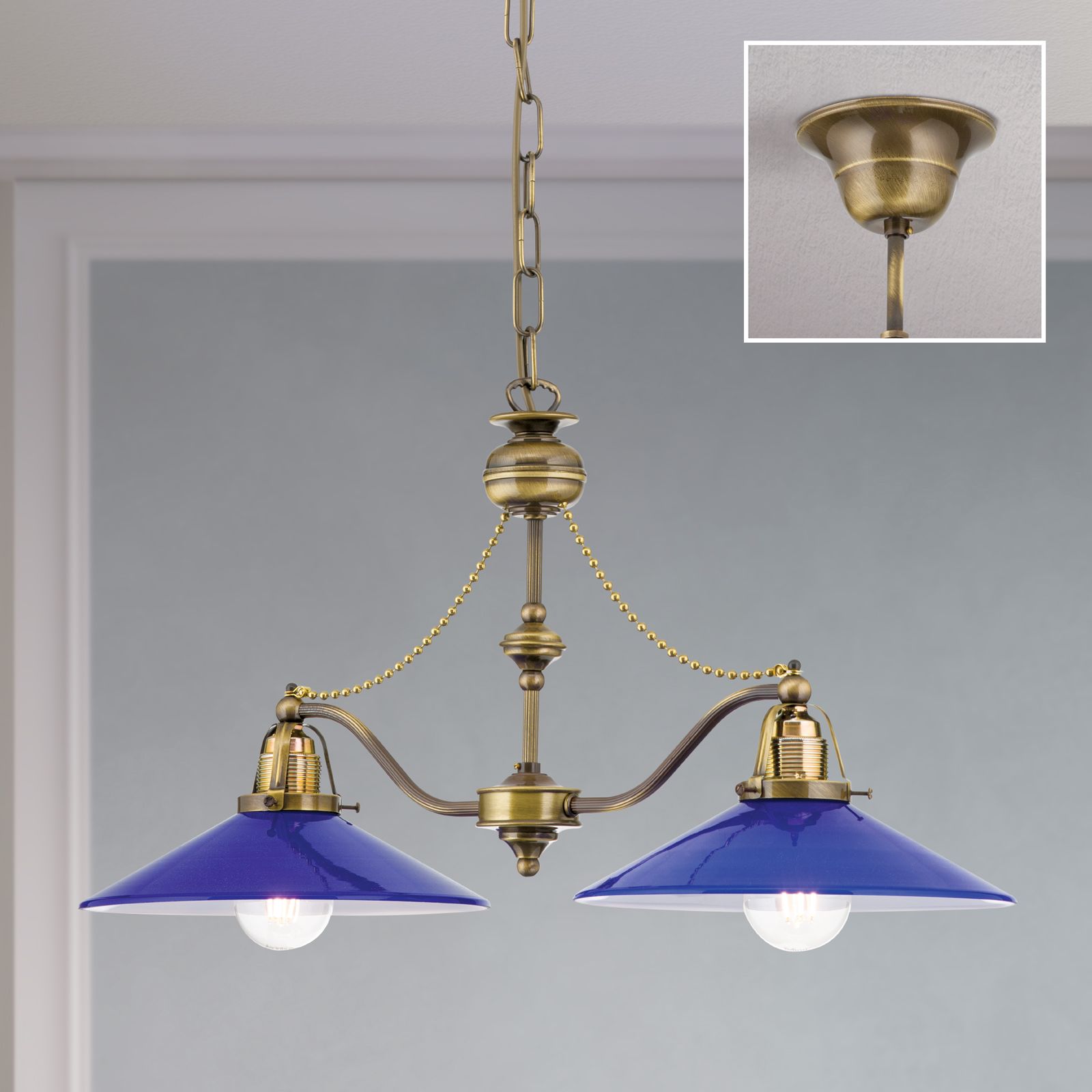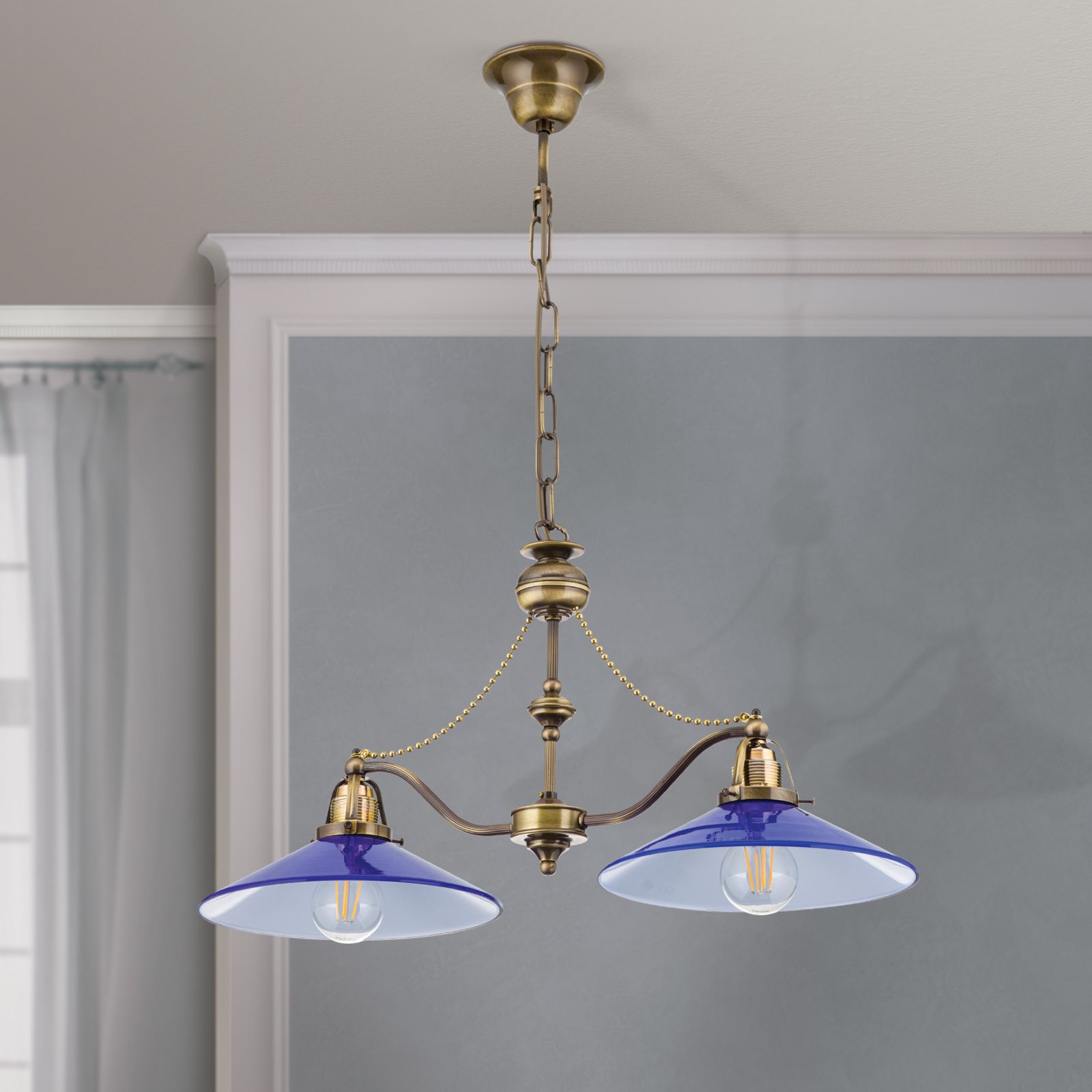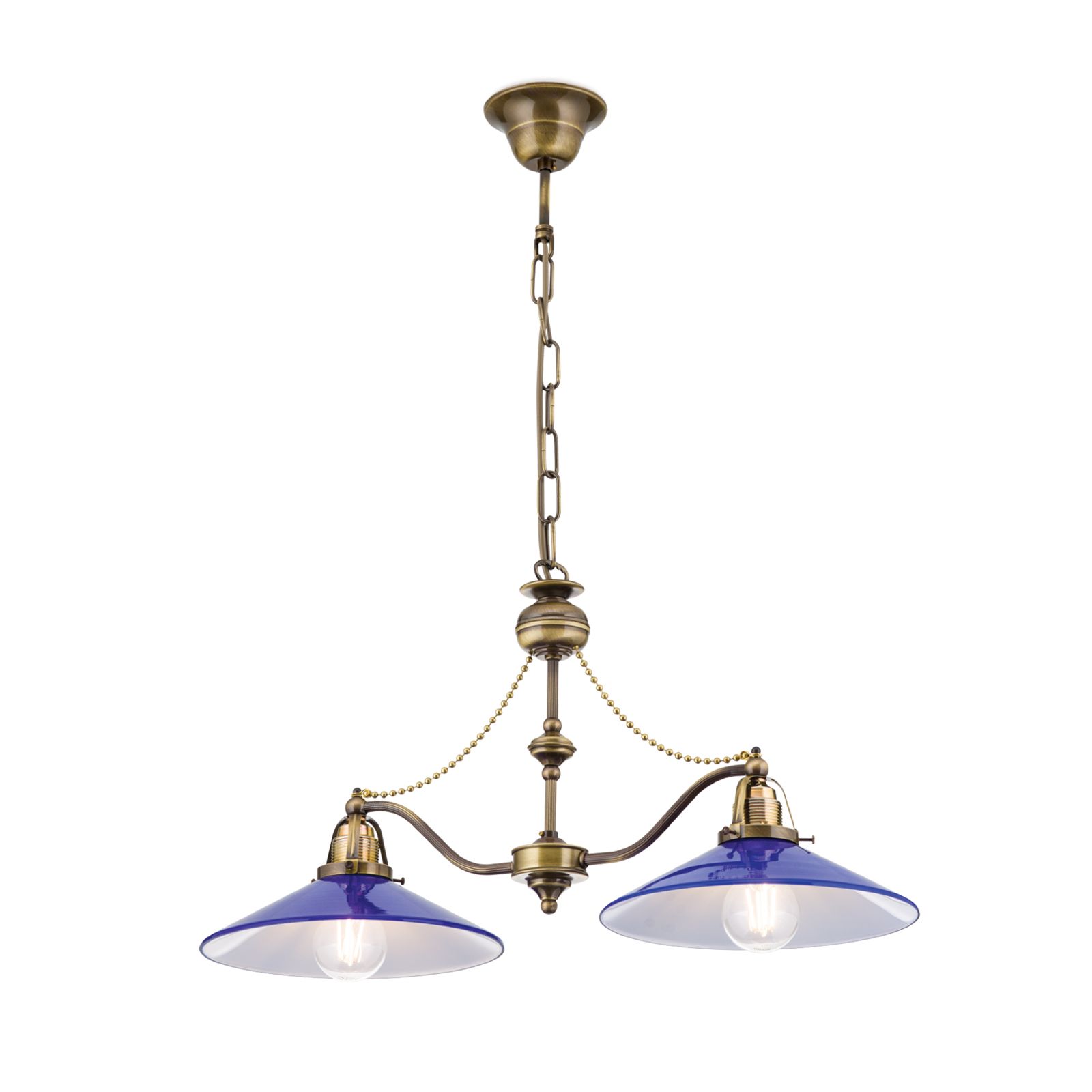 Luster ARTDESIGN, 2-flammig, Patina, mit kobalt-blauen Gläsern