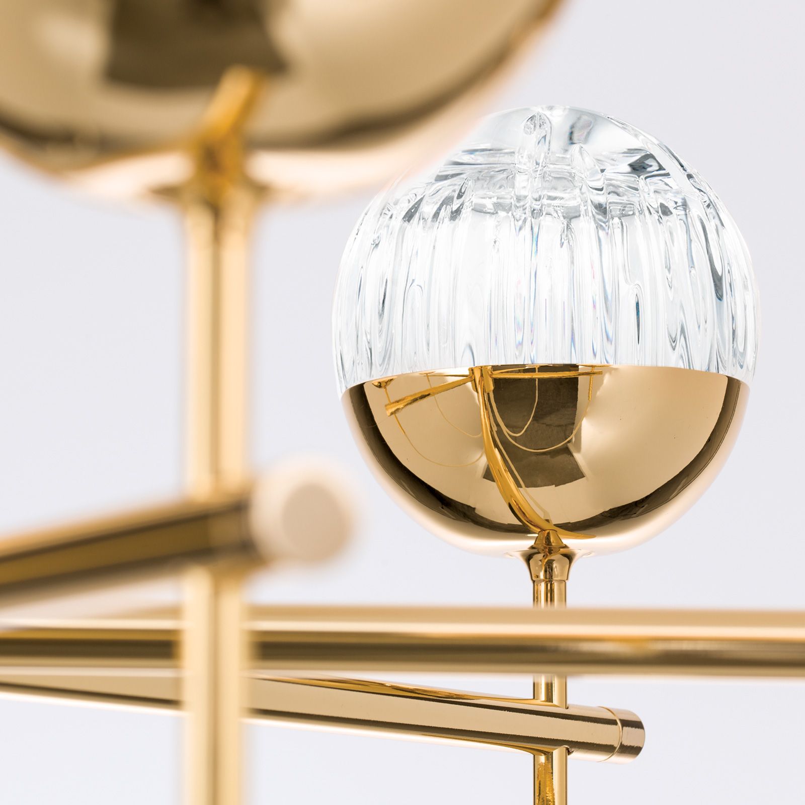 Luster BALL, 6-flammig, gold, mit goldenem Textilkabel und klarem Kristallglas in Linienschliff