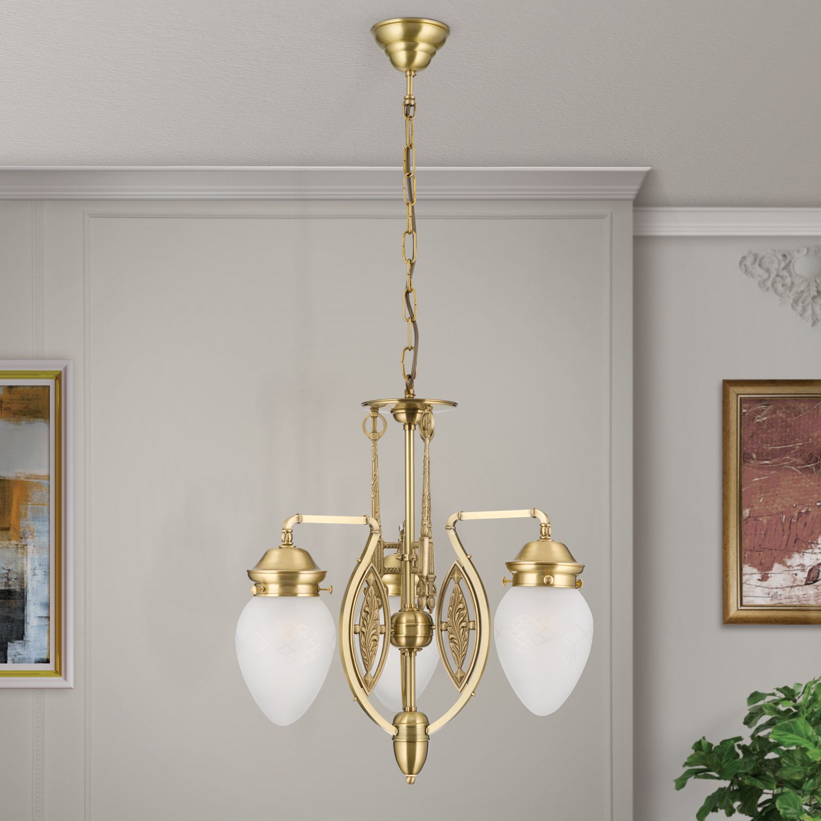 Luster BUDAPEST, 3-flammig, Bronze, mit klar matten Gläsern