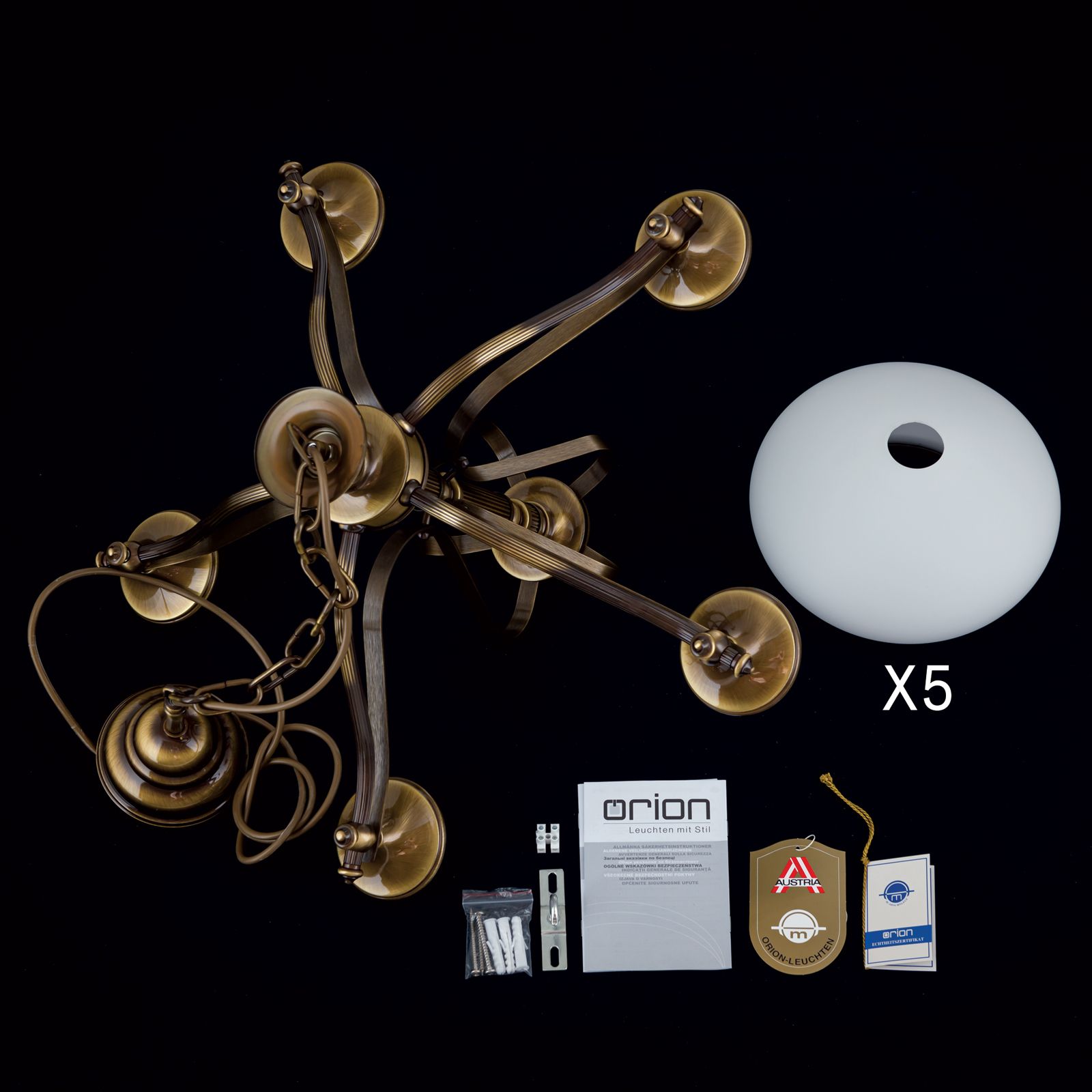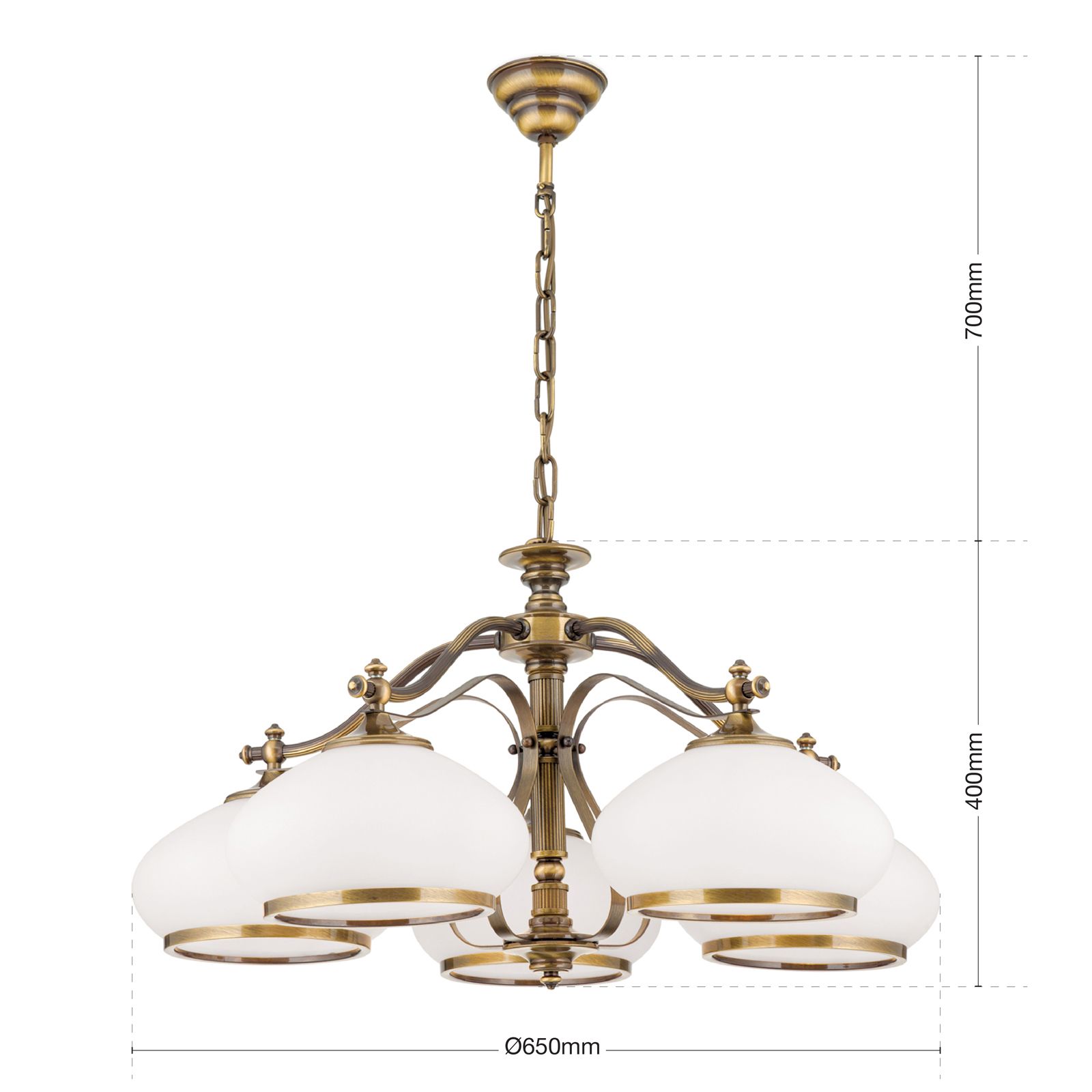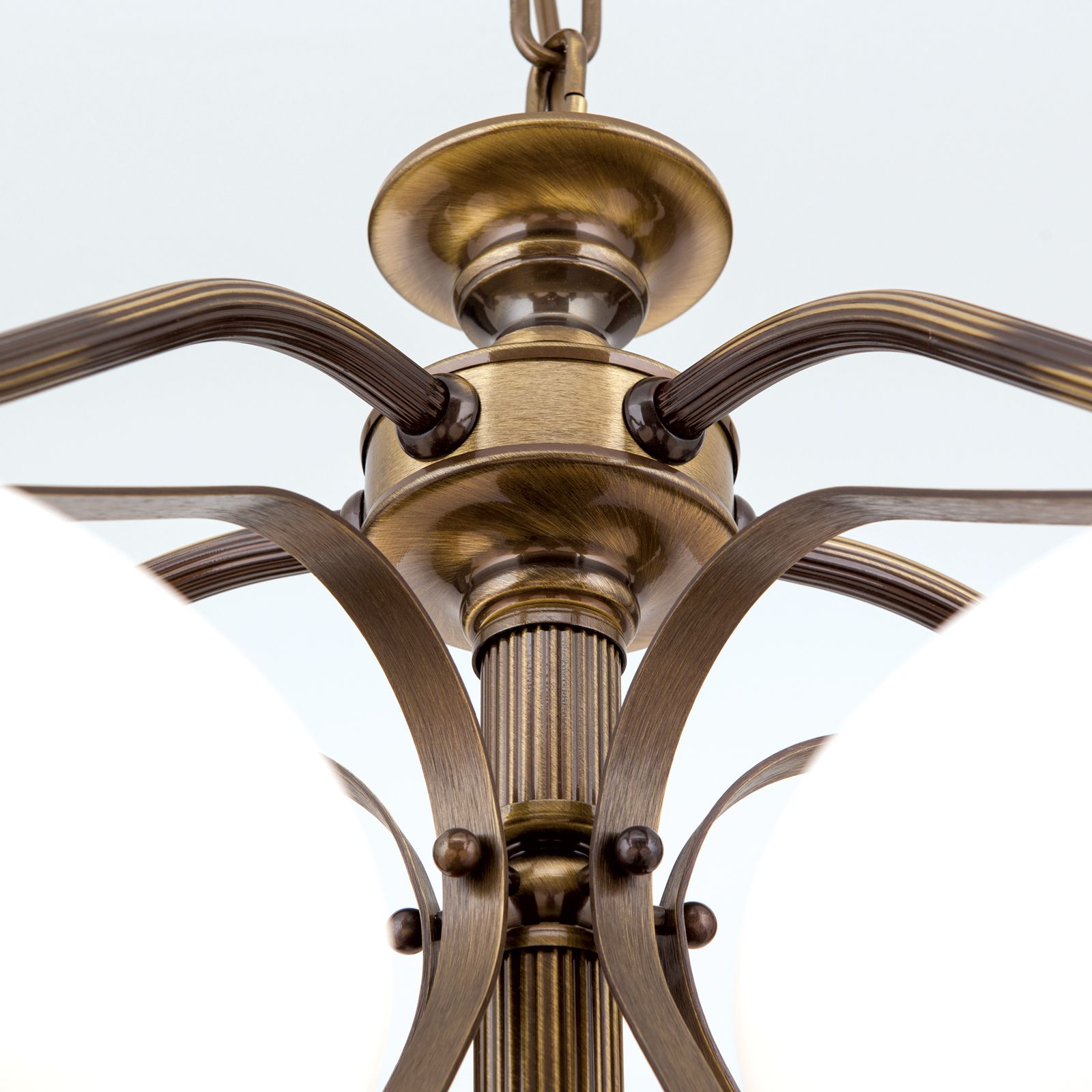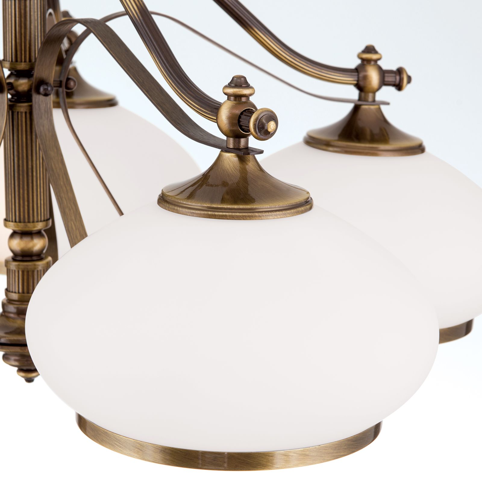 Luster EMPIRE, 5-flammig, Patina, mit opal patinierten Gläsern