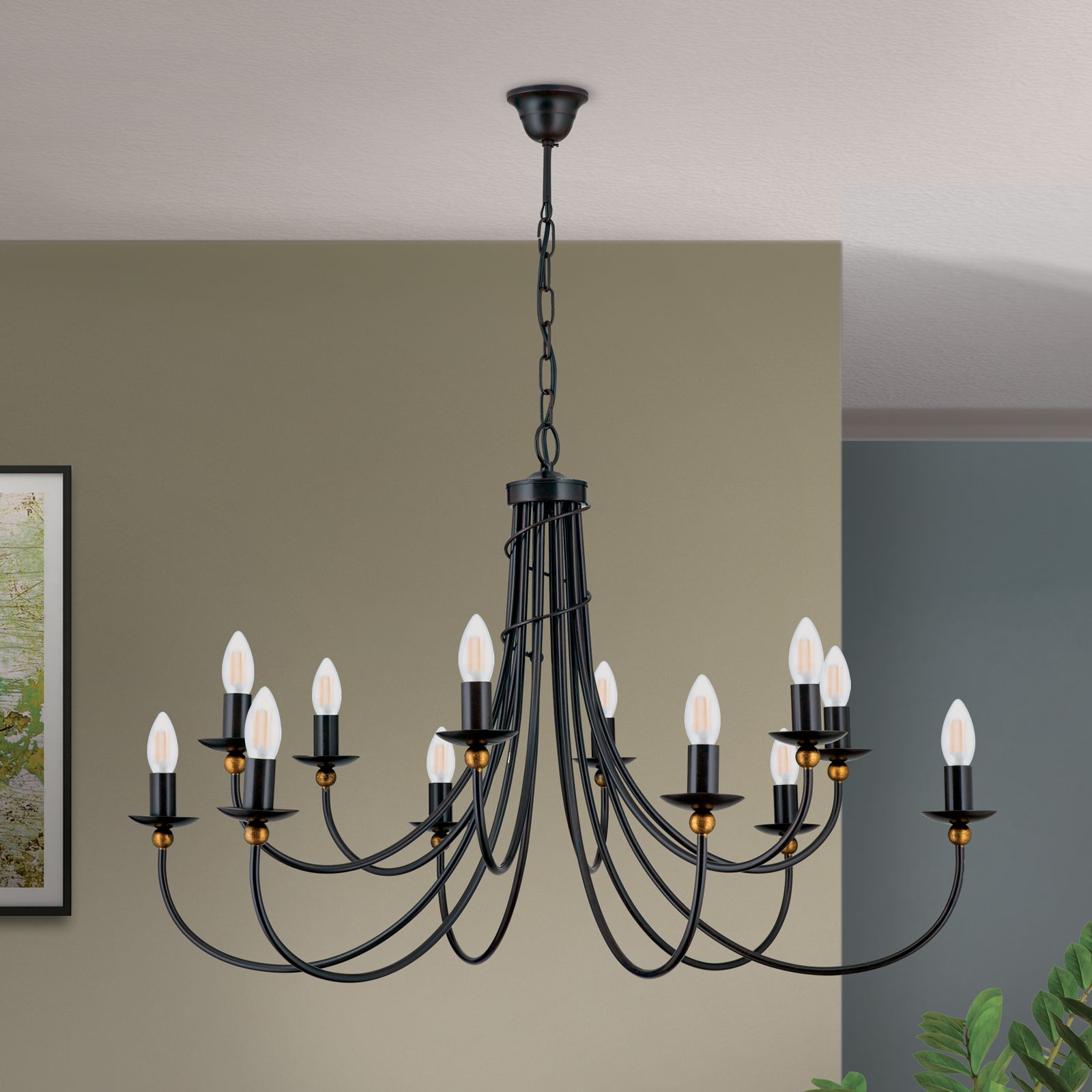 Luster GIOVANNI, 12-flammig, antik-braun, gold