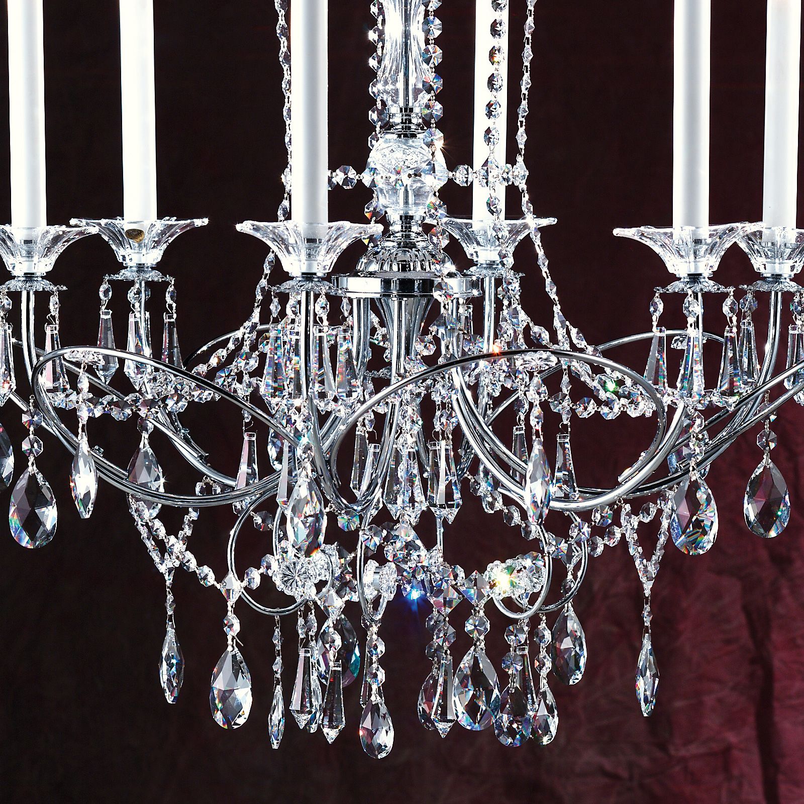 Der 6-flammige Kronleuchter ist die ideale Wahl, wenn Leichtigkeit und repräsentative Eleganz gefragt sind. Empfangsräume, Eingangsbereiche oder Salons mit klassischer Ausstattung bieten einen ebenso passenden Rahmen wie modern eingerichtete Räumlichkeiten, wo er zum kontrastierenden Blickfang wird.