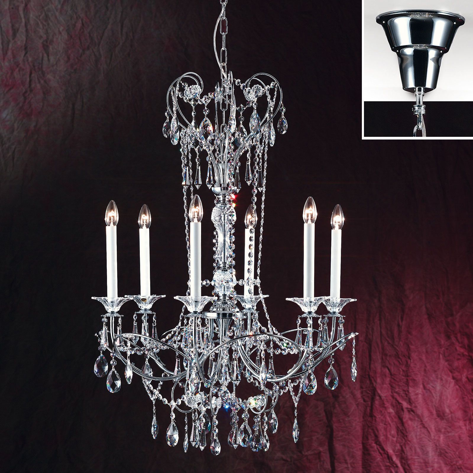 Der Leuchtenkorpus ist in Handarbeit aus Messing gefertigt und mit einem Finish in Chrom versehen. Er ist mit 6 E14-Fassungen versehen und kann mit maximal 40 Watt je Fassung ausgestattet werden. Windstoßlampen oder Kerzenlampen sind eine stilvolle Ergänzung und zudem wartungsarm, wenn sie als LED-Variante gewählt werden.