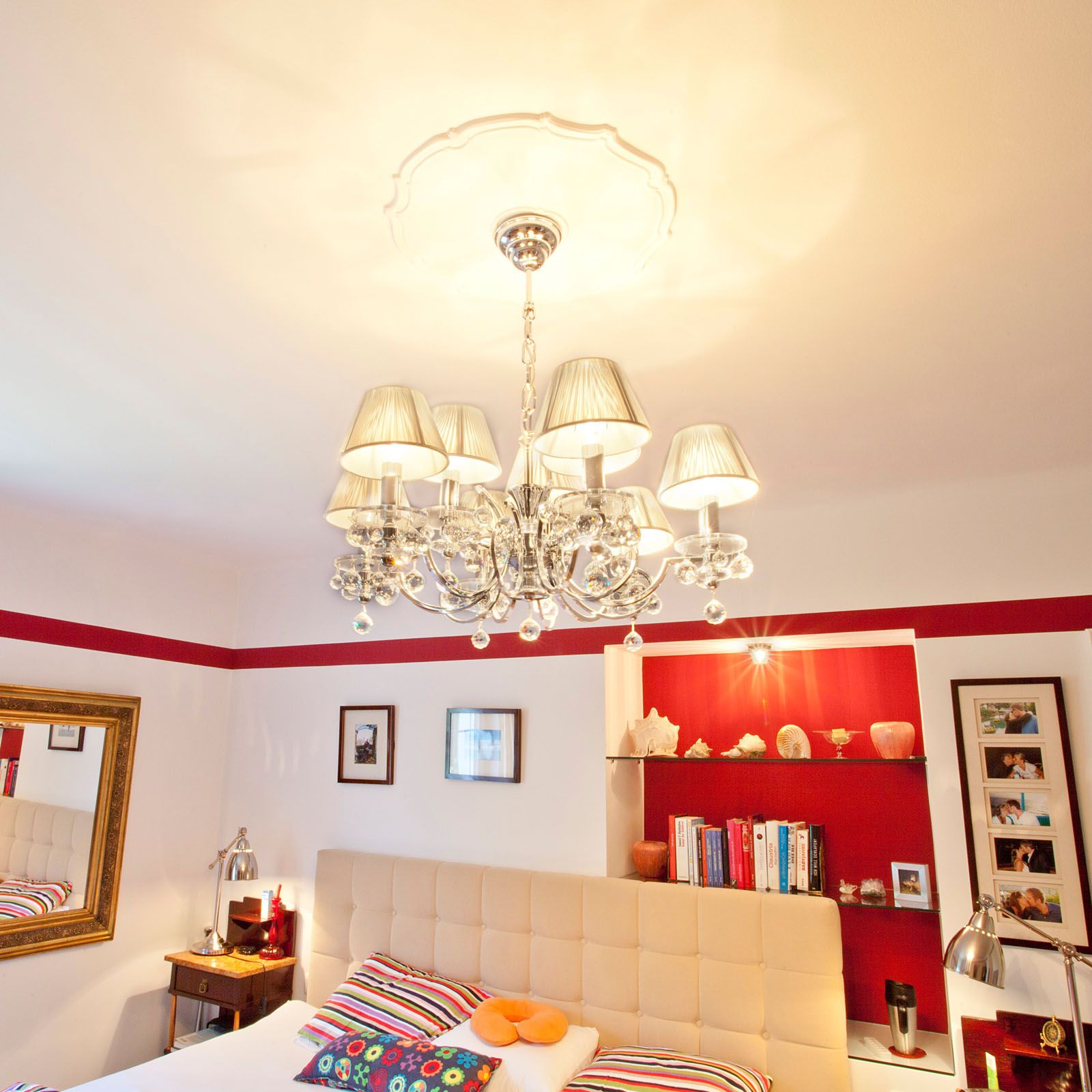 Mit seinem sowohl klassischen als auch prunkvollen Erscheinungsbild sorgt der 9-flammige Kronleuchter KRISTALLDESIGN für glanzvolle Momente und angenehme Lichtverhältnisse. Seinen Platz findet er in einem Wohn-, Esszimmer oder Eingangsbereich, wodurch er zum Blickfang wird und seine schmückenden Details bewundert werden können.