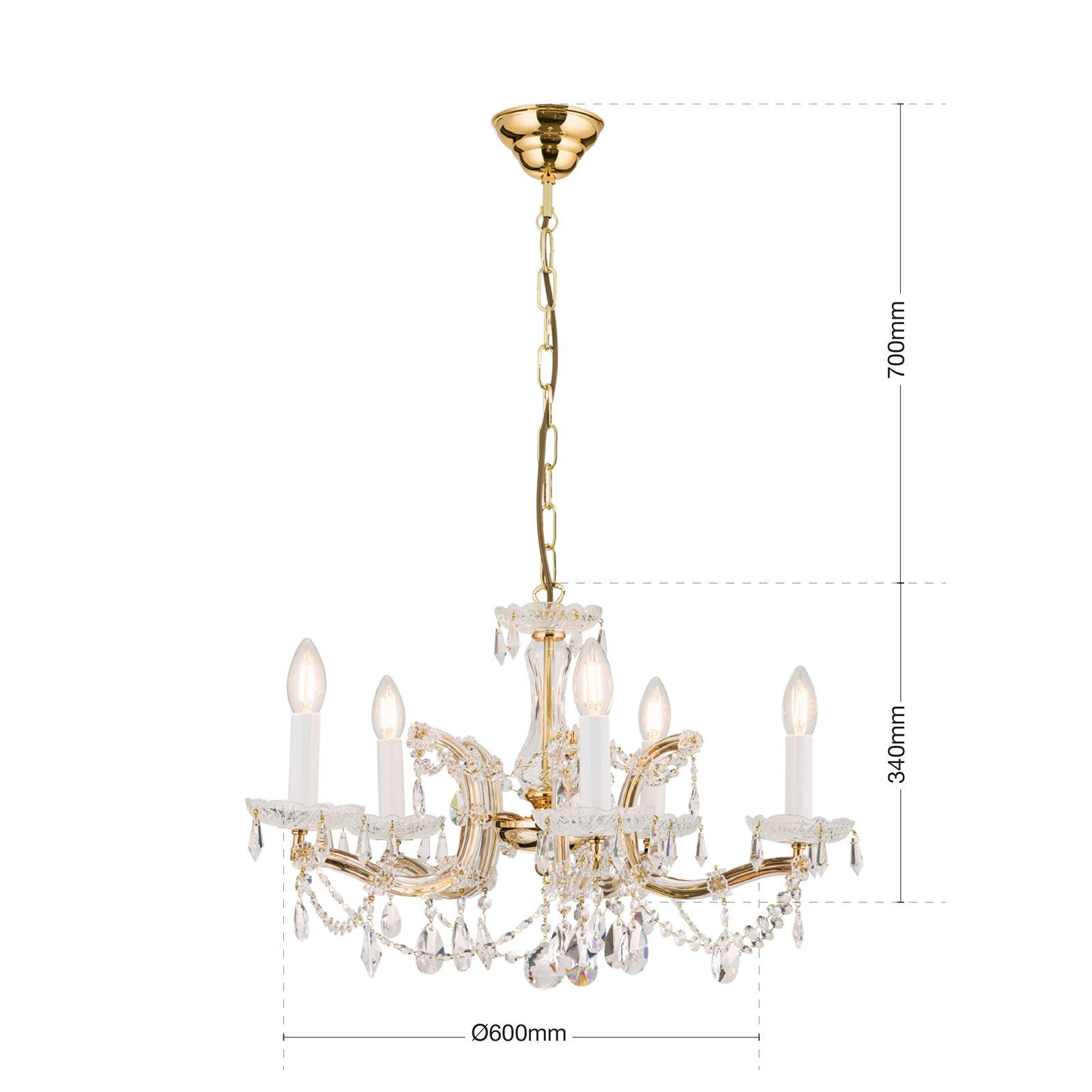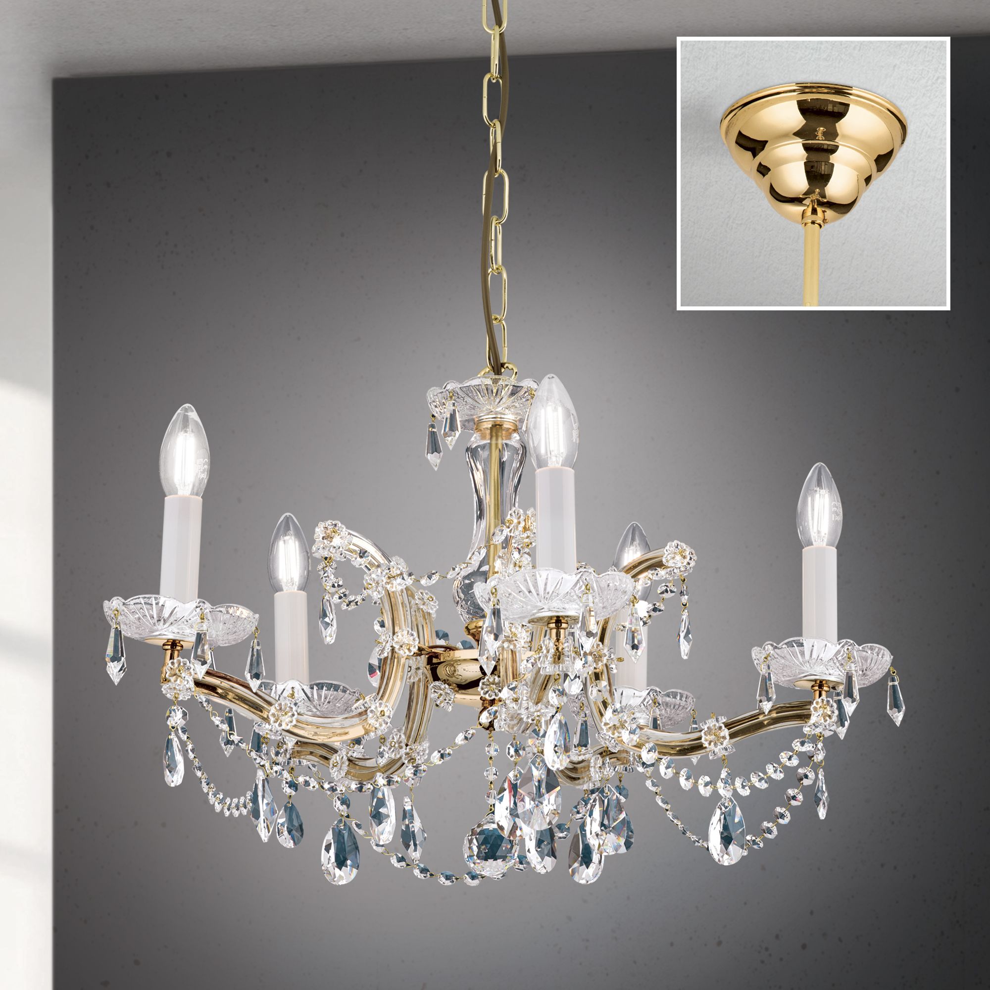 Luster MARIA THERESIA, 5-flammig, gold