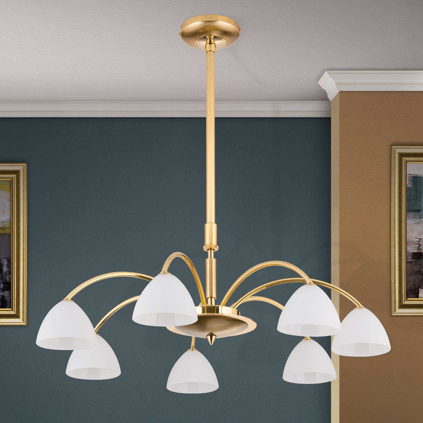 Luster OPALDESIGN, 7-flammig, Gold-matt, mit Opalgläsern
