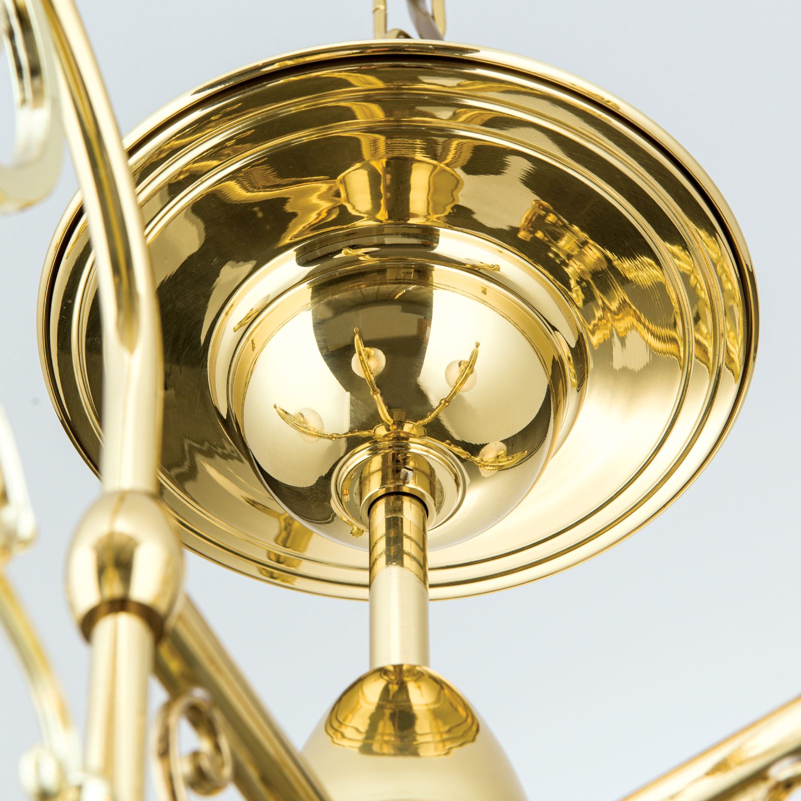 Die hochwertige Verarbeitung und das edle Messingfinish machen diesen Kronleuchter nicht nur schön anzusehen, sondern auch langlebig und wartungsarm. Er wird Ihnen viele Jahre lang Freude bereiten und zu einem echten Blickfang in Ihrem Zuhause werden.