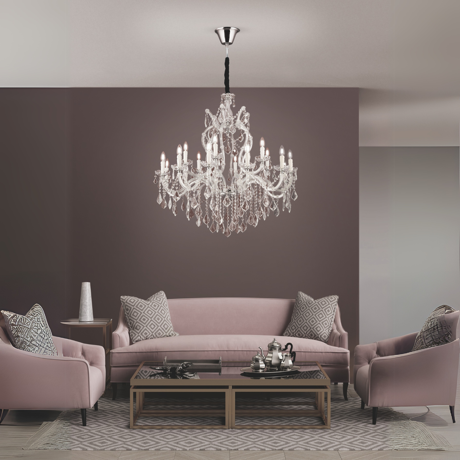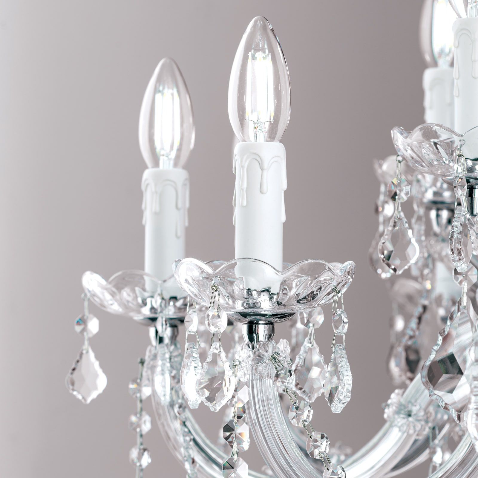 Den THERESA-Luster finden Sie auch: 12-flammig, 6-flammig ergänzend dazu Decken- und Wandleuchten im Sortiment verfügbar.
