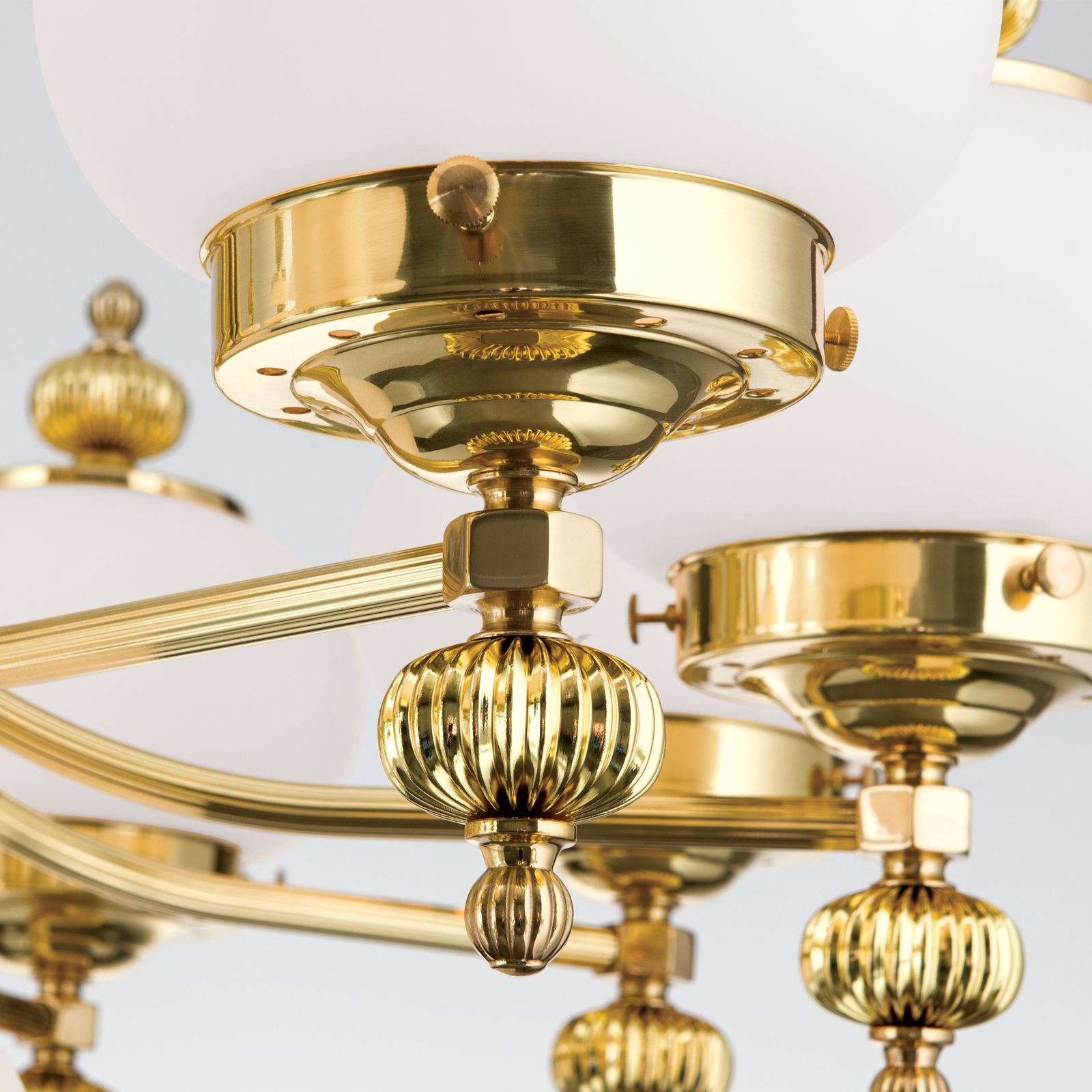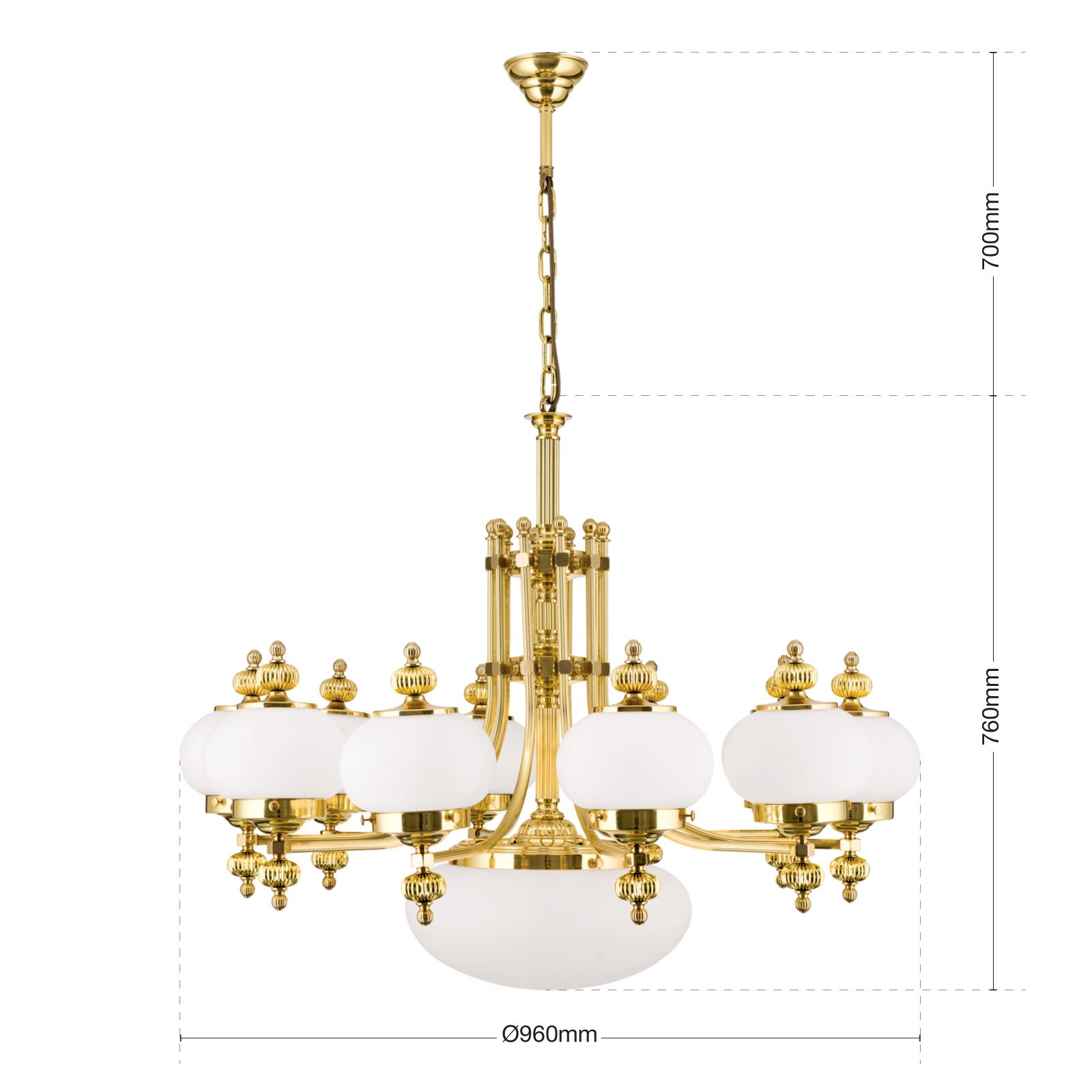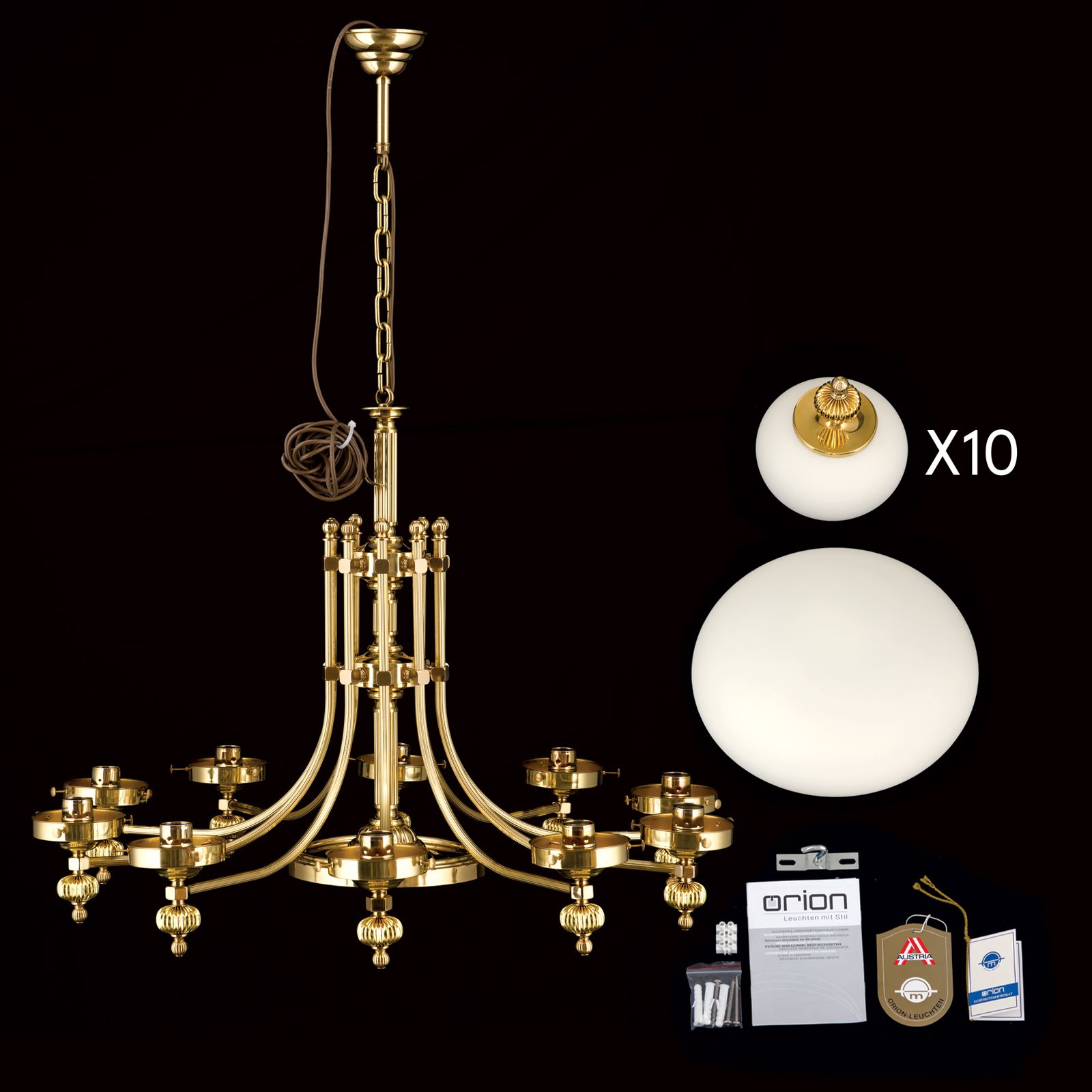 Luster WIENER NOSTALGIE, 10+1-flammig, Messing-glänzend, mit opal matten Gläsern, aufwärts