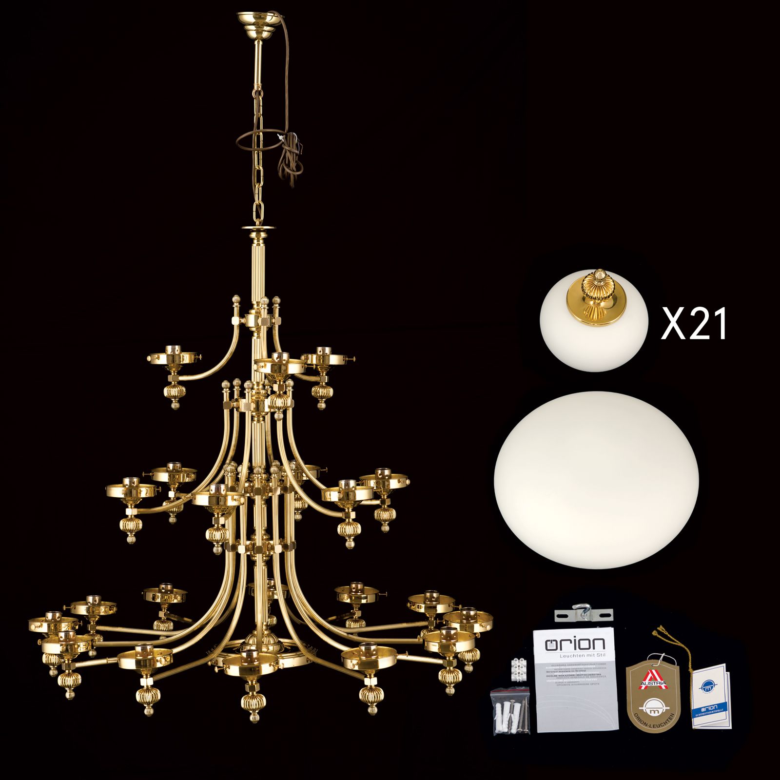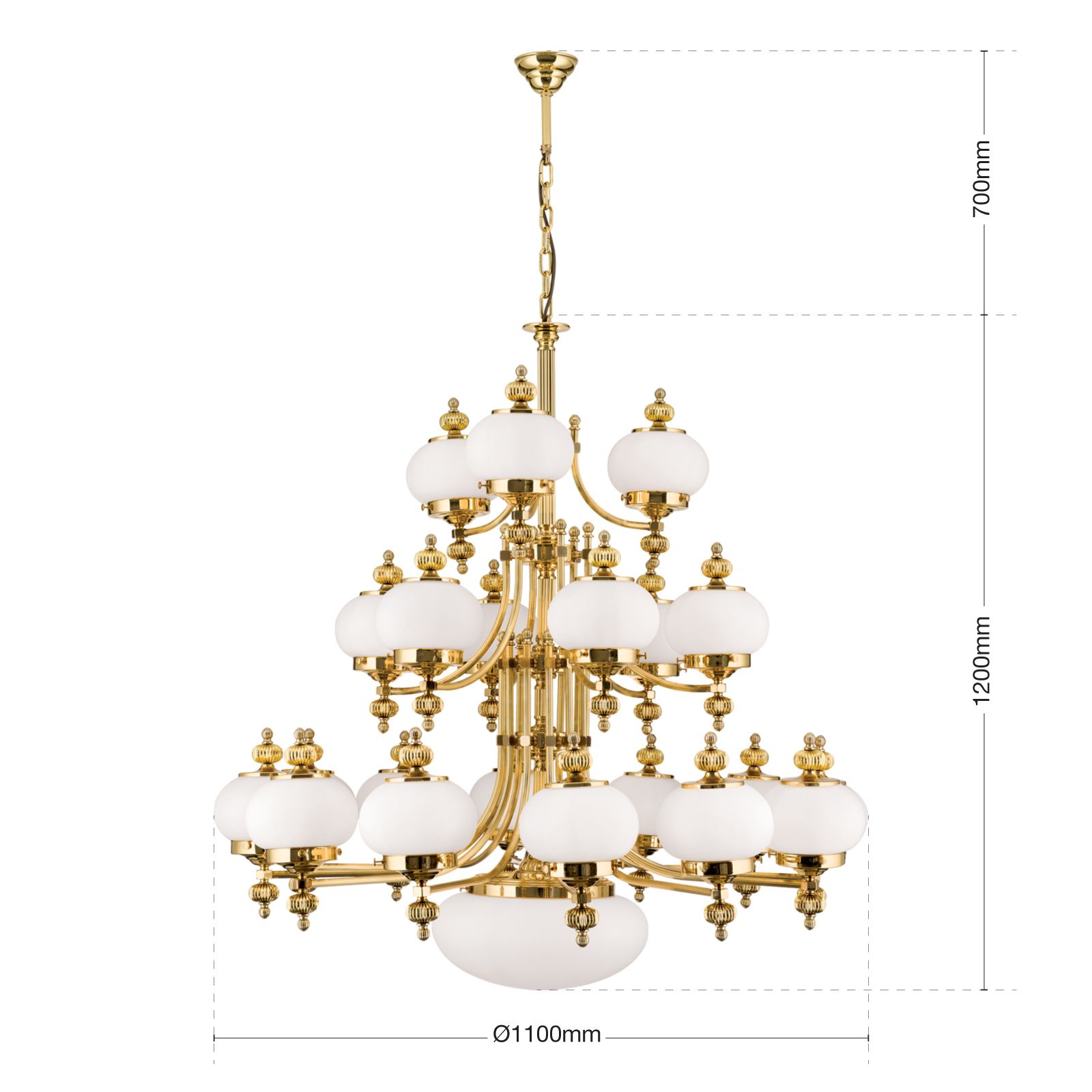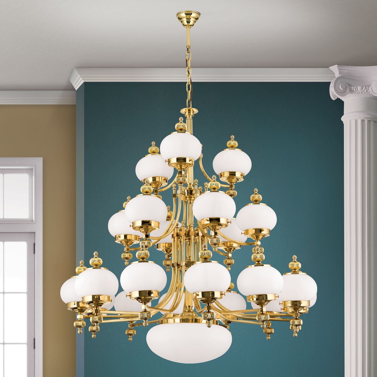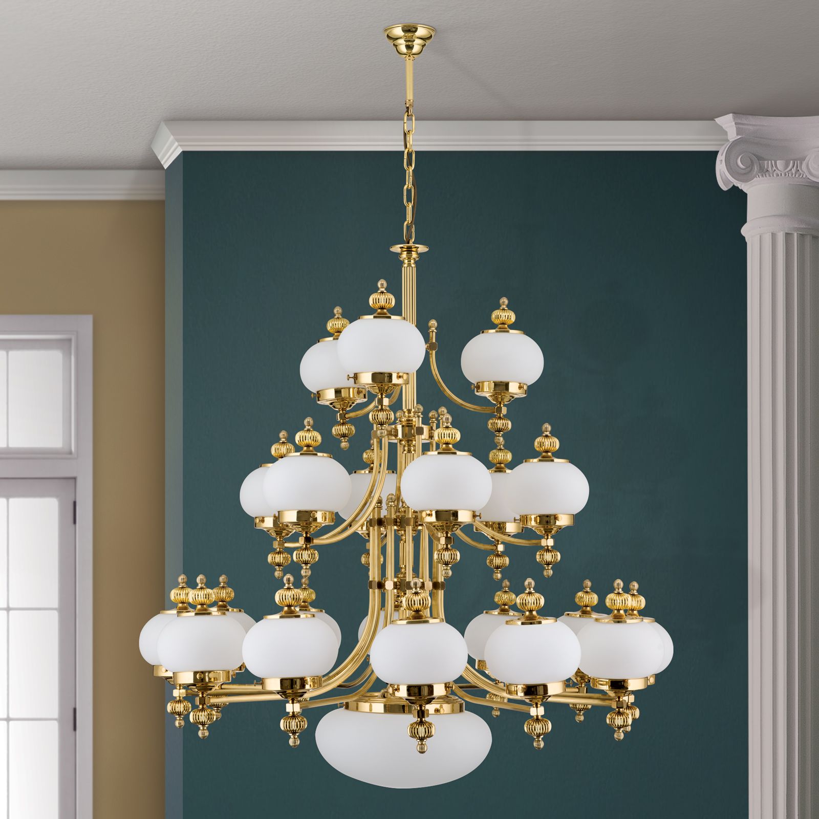 Luster WIENER NOSTALGIE, 22-flammig, Messing-glänzend, mit opal matten Gläsern, aufwärts
